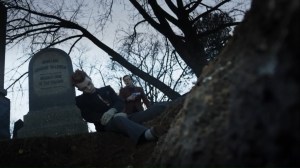 Back outside at the cemetery, Jeremiah leads Bruce onward when he spots Jerome’s corpse resting on the headstone.