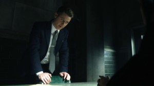 Over at the precinct, Leslie sits in interrogation while Harvey and Jim weigh their options. Jim won’t let her walk free, though Harvey feels that her crime is small compared to what others have done, the two of them included. True as that may be, Jim tells Harvey to leave.