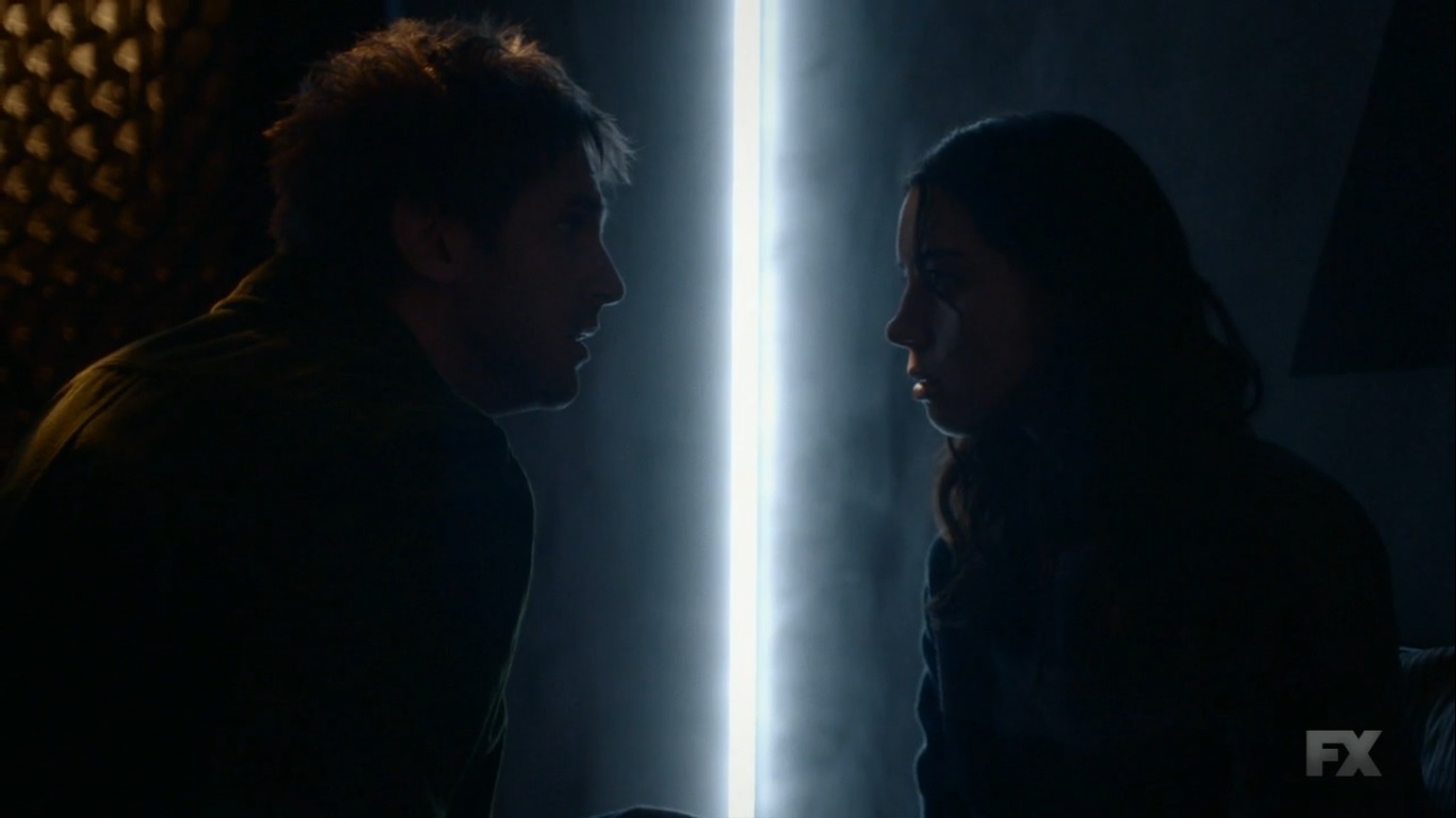 Clark, resting hand on Syd’s wrist, reminds Syd that David is a powerful mutant who could destroy the world if he wanted to or if someone hurt his feelings. Syd takes that to heart, but she’s still going after David. Not because of what Clark just said, but because love is what they have to save if they’re going to save the world. She’s just not sure that’s what David is doing.