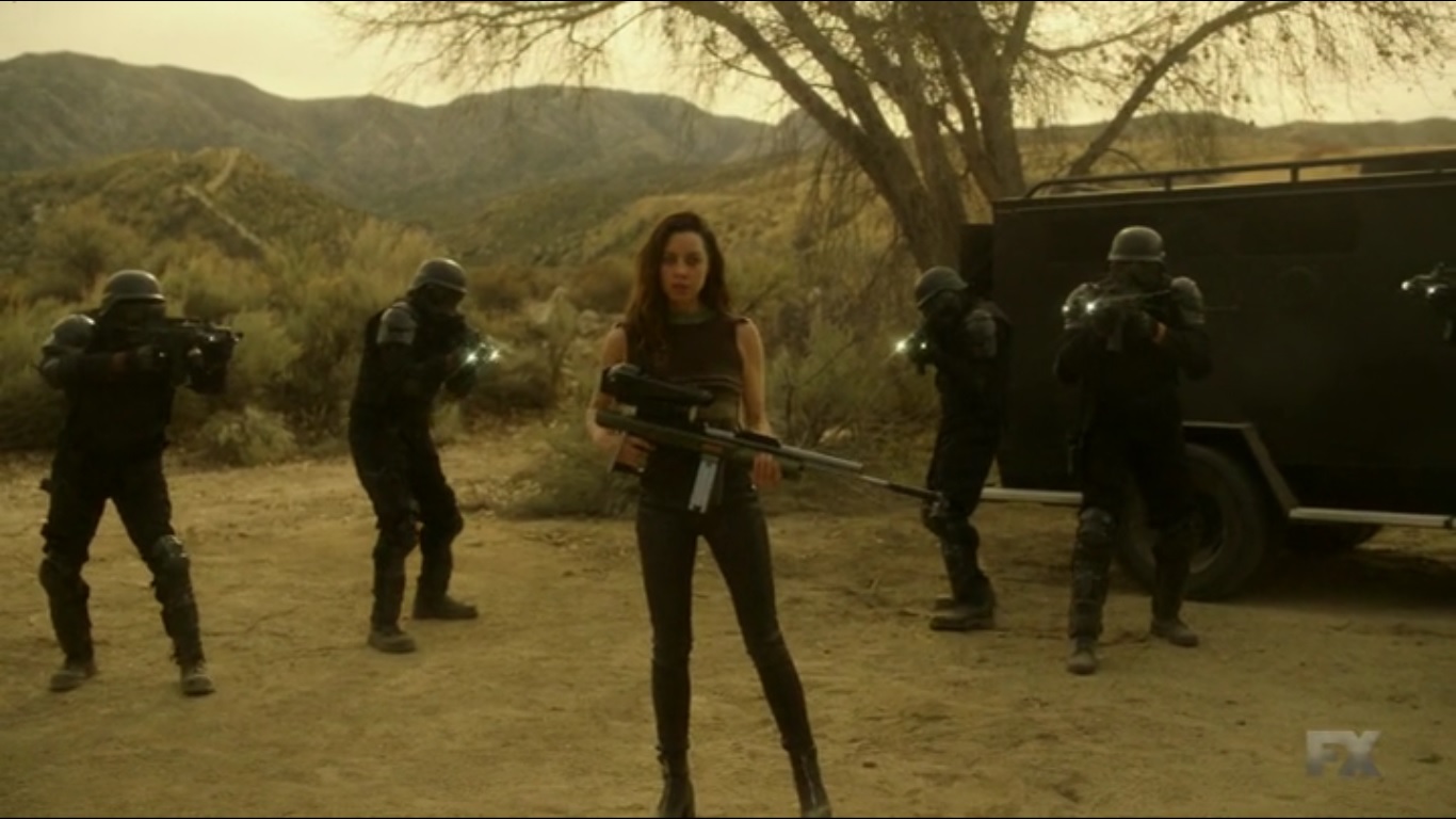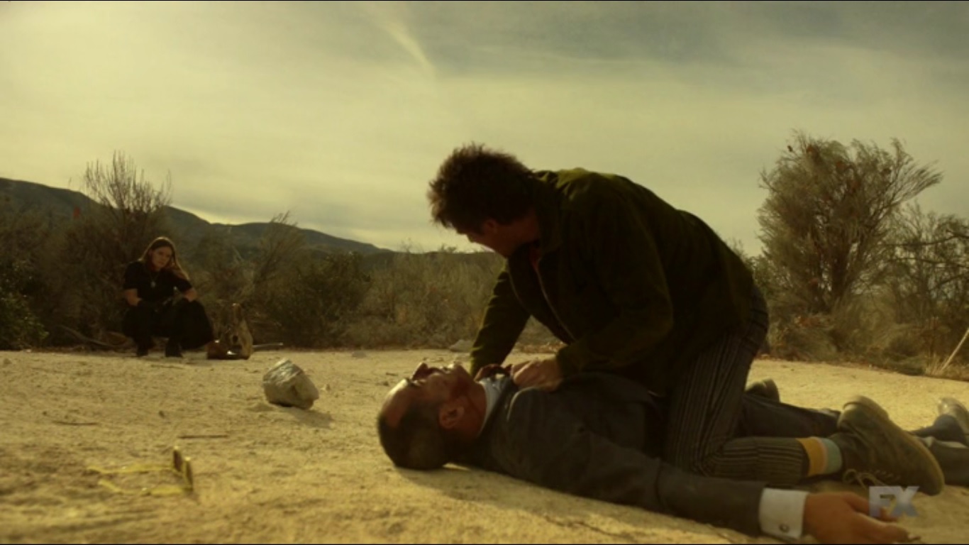Back in the desert, Lenny’s off of her high and looks through her scope. She sees Syd pointing her gun at David. Just as Syd fires, Lenny fires her own bullet. The bullets collide and the explosion sends David and Syd in opposite directions, knocking them unconscious.