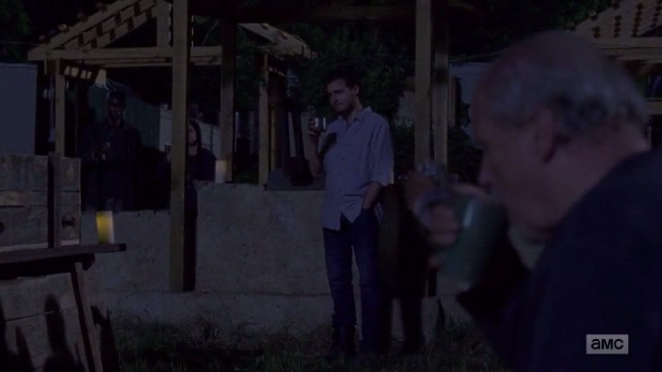 So indeed, the entire Hilltop minus Maggie and baby Hershel gather for Ken’s farewell.