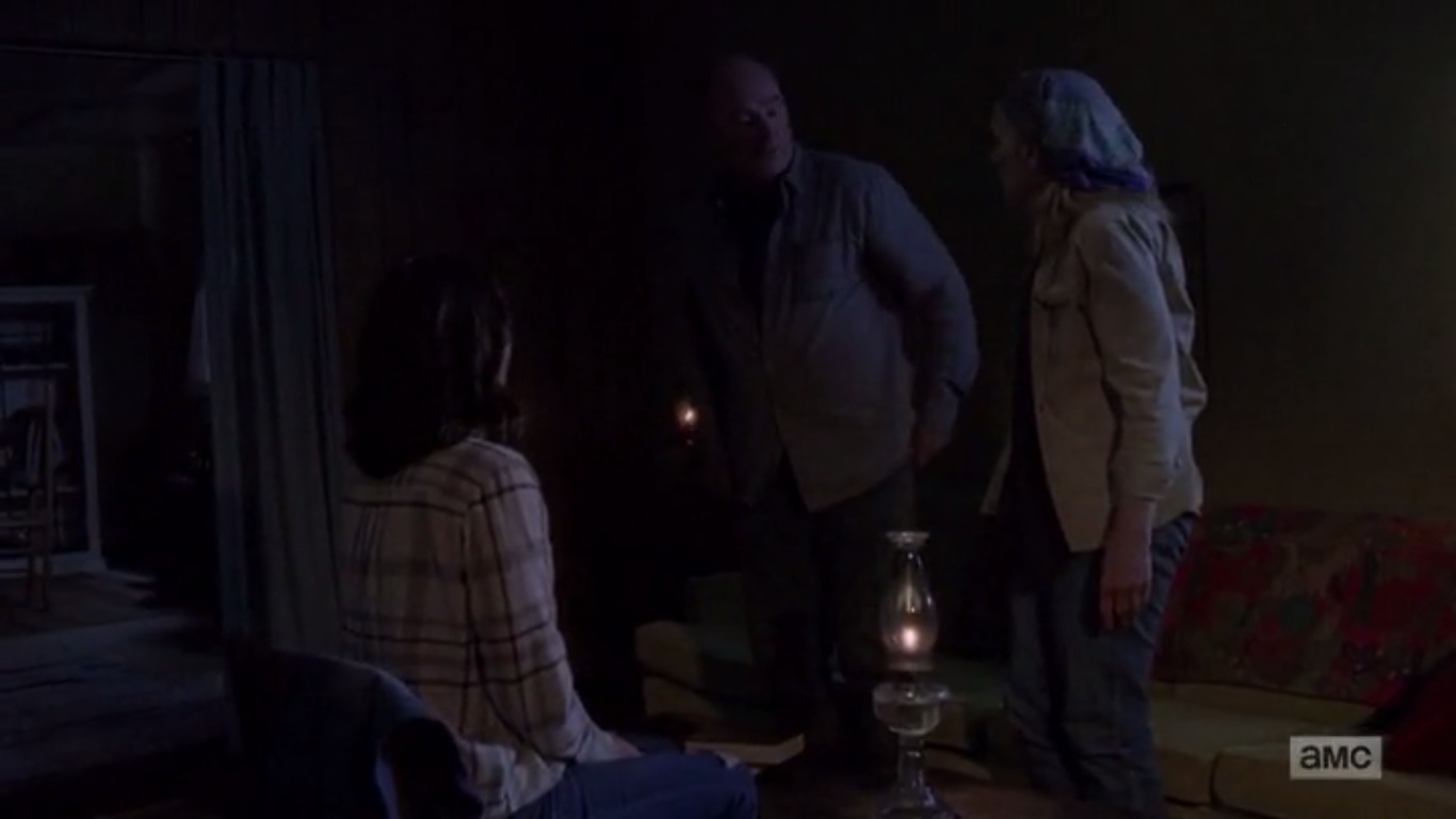We return to the Hilltop, where Gregory presents a drink to Tammy and Earl, but they turn it down. Eventually, Tammy relents and has a drink. Earl later returns his wife to her bed, where she just wants to sleep. Gregory offers to sit with them if they would prefer that.