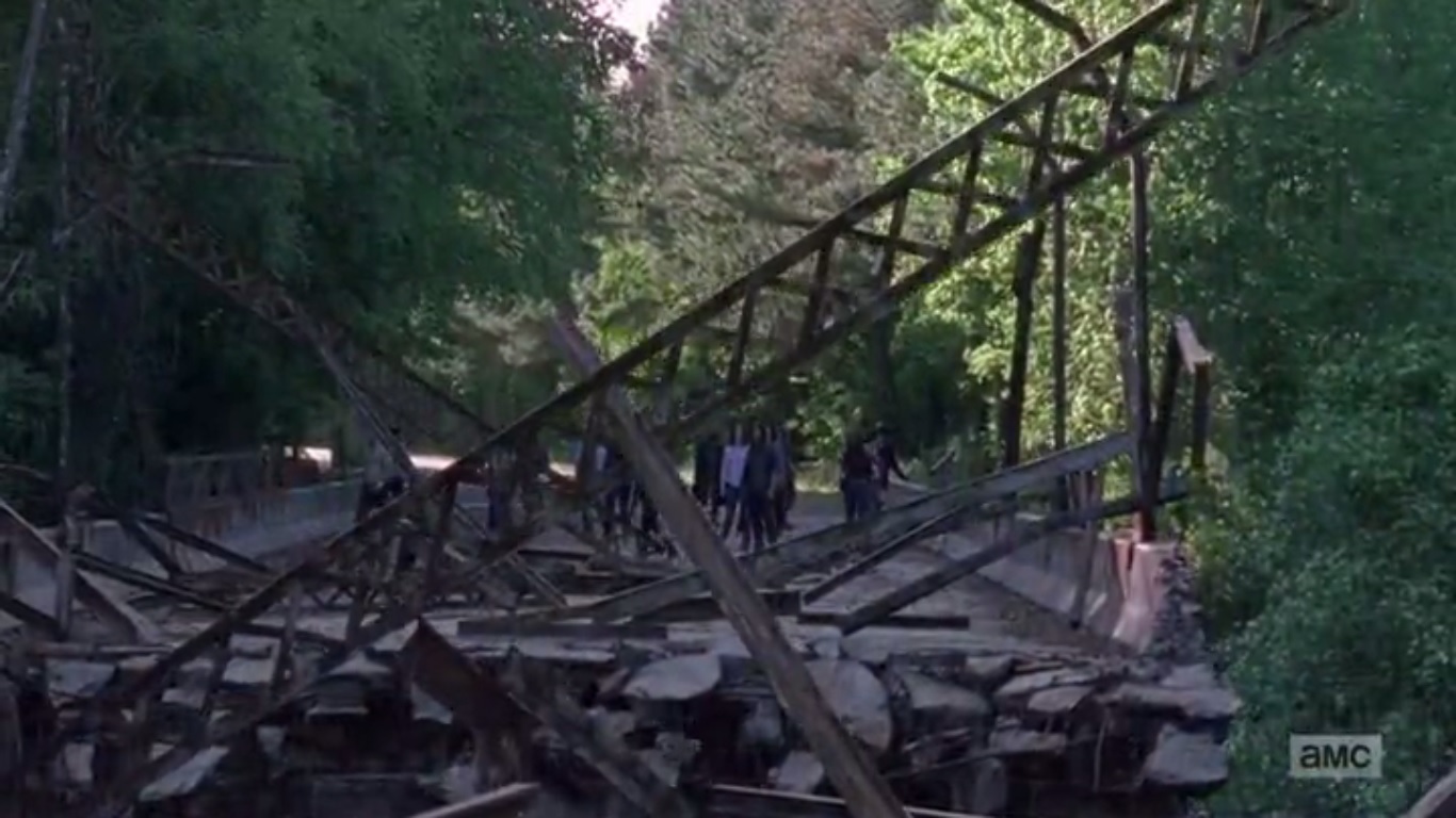 However, there’s a problem: the bridge is now gone due to a herd that crossed through. They can still get to Alexandria from this side and stay there until it passes, but Route A has taken days to clear and Maggie needs to get home to baby Hershel.