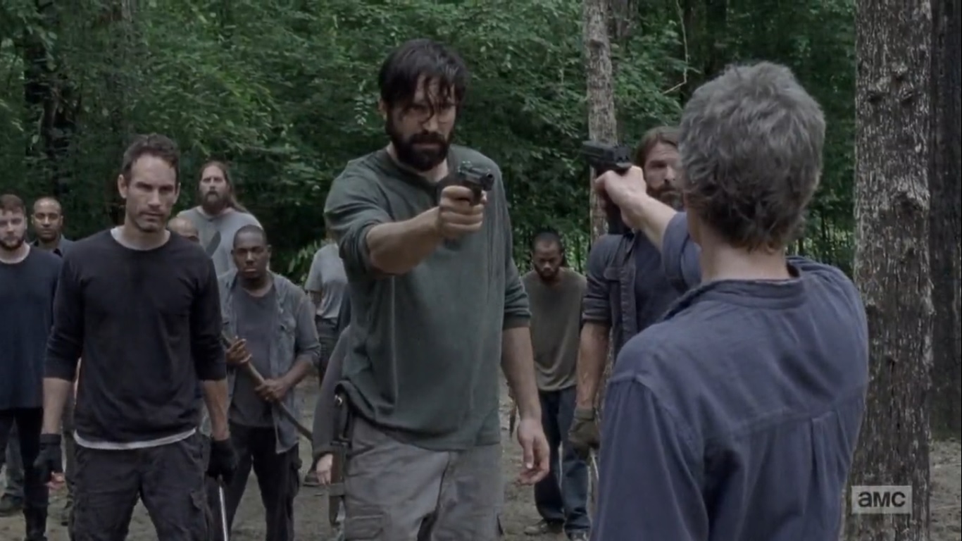 Saviors returns to the camp with guns and weapons. You had one job, Alden. Carol doesn’t want a fight breaking out, but Jed figured out that Oceanside is responsible for the Saviors’ deaths. If it’s war they want, it’s war they’ll get. And Jed isn’t about to listen to Carol’s orders. He takes her keys, but that’s when she goes on the attack.