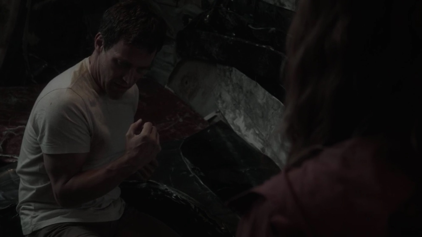 Reed rises, believing that the attacks have passed. Caitlin sets down a cup of water and tells Reed that she has something to show him.