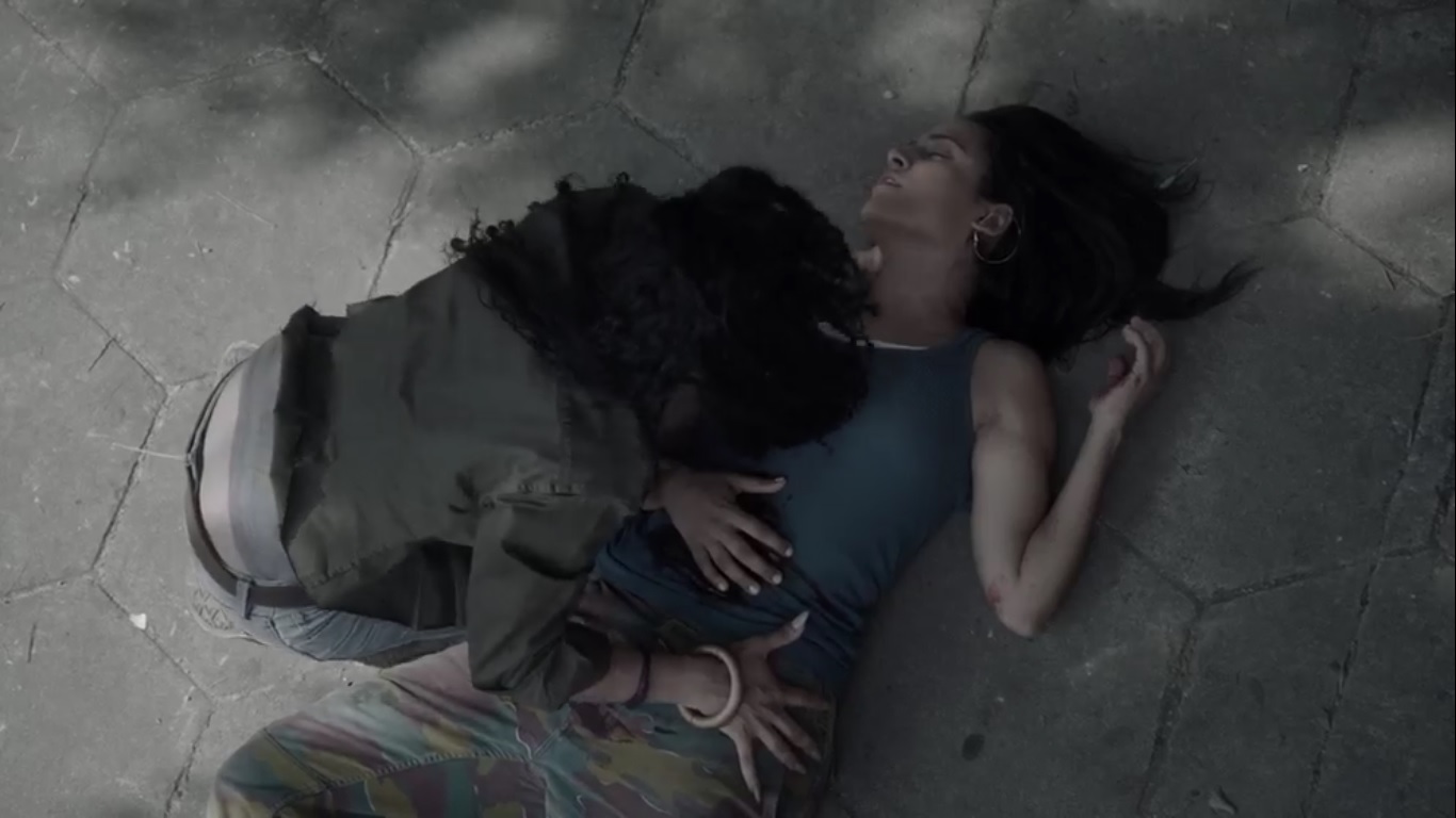 And this is when a few Purifiers drive up, shove Reeva aside, and attack Benny. She puts up a fight at first, but one of the Purifiers manages to shove a blade right into her gut. The Purifiers flee as Reeva is left to watch Benny slowly bleed to death.