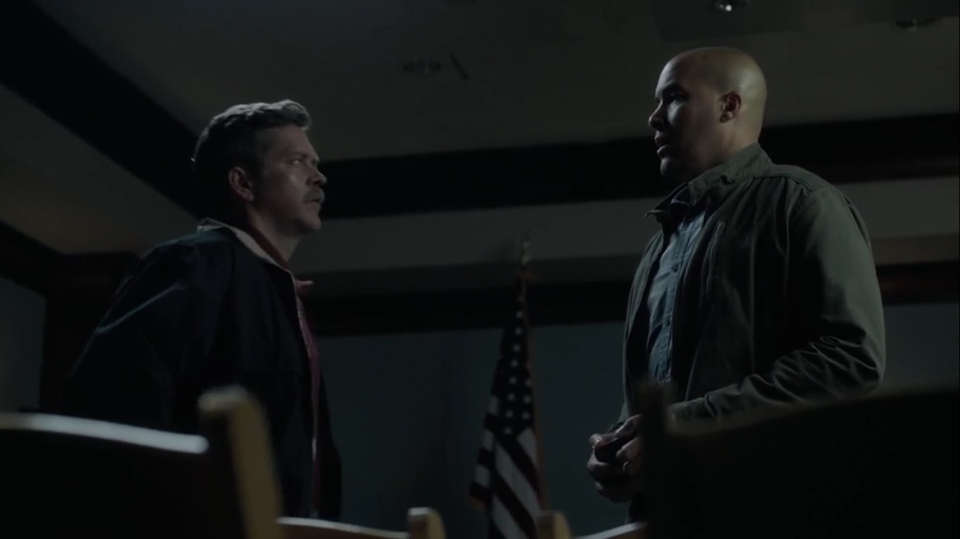 Jace and Ted head into an abandoned barbershop so Jace can be properly introduced to Mr. Benedict Ryan, played by Peter Gallagher. Ryan tells Jace that he appreciates the Baltimore attack and many other people have been inspired by him. Jace is just looking for justice.