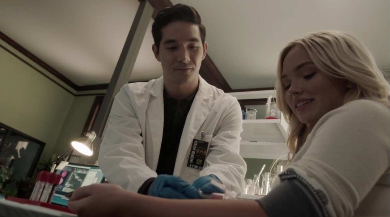 Noah takes a blood sample from Lauren and talks about the breakthrough. Lauren asks where all of the blood is kept, and it goes to storage. Lauren wants to see it and insists to see the entire process, as it’s important to her, but Noah says that visitors might contaminate it. Still, Lauren is helping millions of people, so Noah agrees to take her, as long as he can also take her out to lunch.