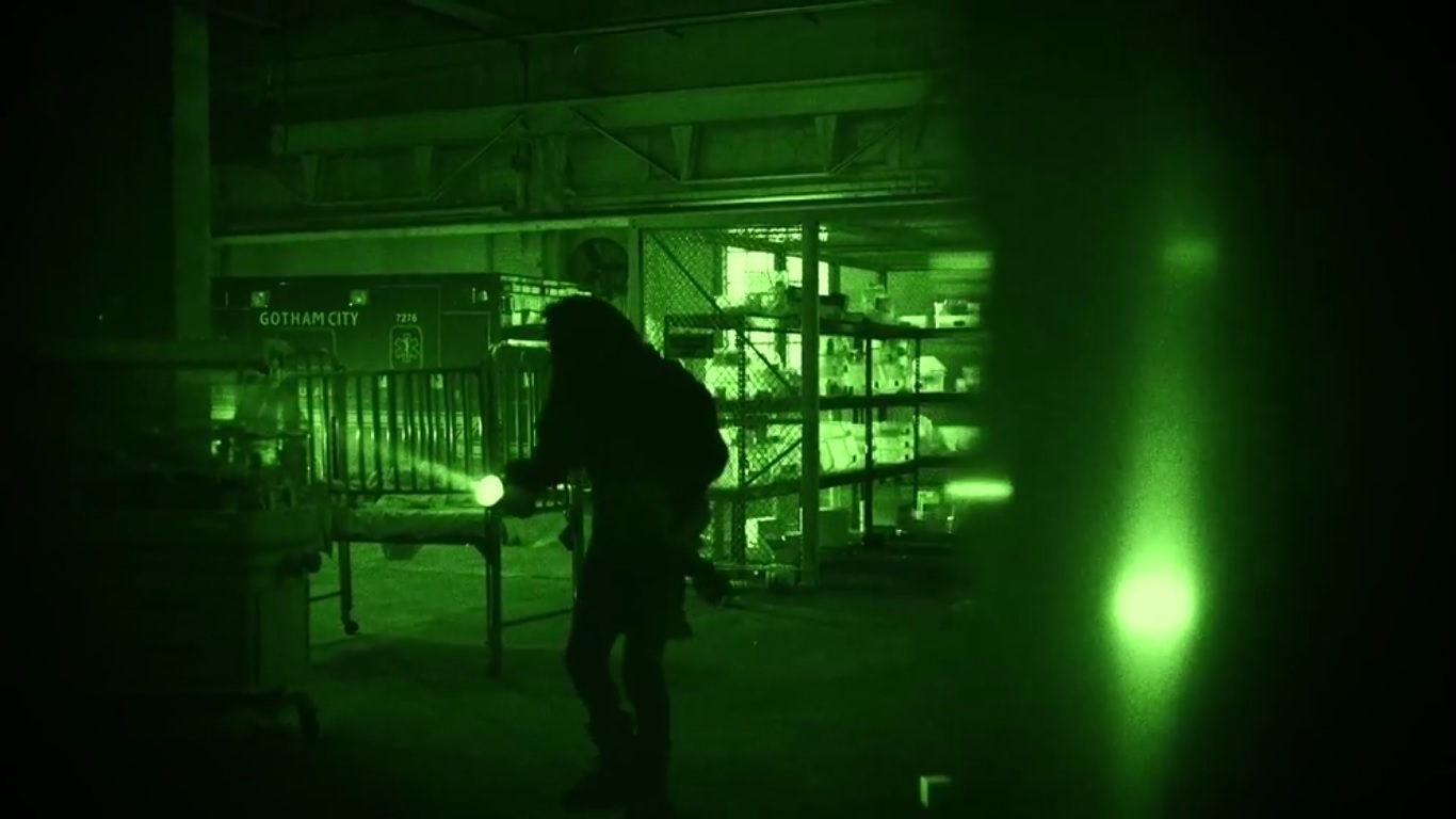 Scarecrow’s crew raid the precinct for all that they can, even the beans, but they find themselves being taken out one-by-one by Bruce, who has a nifty pair of night vision goggles. However, when the power comes back on, Bruce is blinded for a bit, giving Scarecrow’s crew time to escape.