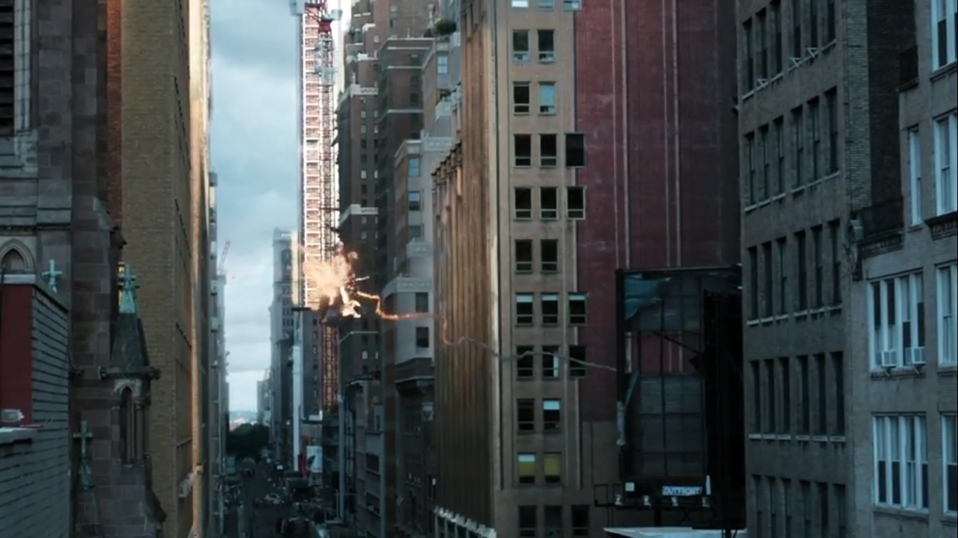 Indeed, a chopper has arrived. Bruce and Jim radio to the helicopter, which is headed to the rendezvous point. Before it can get far, though, it’s shot down by a rocket and spirals off before eventually crashing.