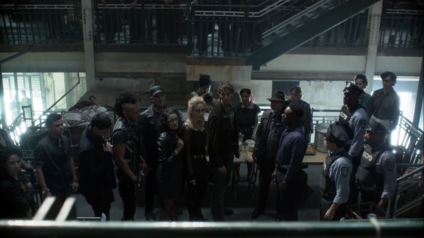 GCPD controls a ten block radius where 150 civilians are fed. That number could grow, as there are others who couldn’t get out when the city was abandoned. Everyone has a duty to help. The officials remind Jim that no one is allowed in or out of Gotham. Anyone who stayed after the evacuation is no longer the government’s responsibility.