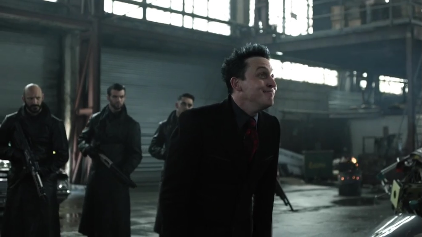 All of the various Gothamites are getting ready in their various turs. Penguin’s got some new shades, Bullock’s got drinks, and Jim Gordon is ready to stand his ground at the GCPD. But then Jim, Harvey, Oswald, and Nygma all are joining forces, it seems. They assemble atop a building and, at Jim’s order, open fire at all approaching forces on the streets of Gotham. All in the name of Gotham.