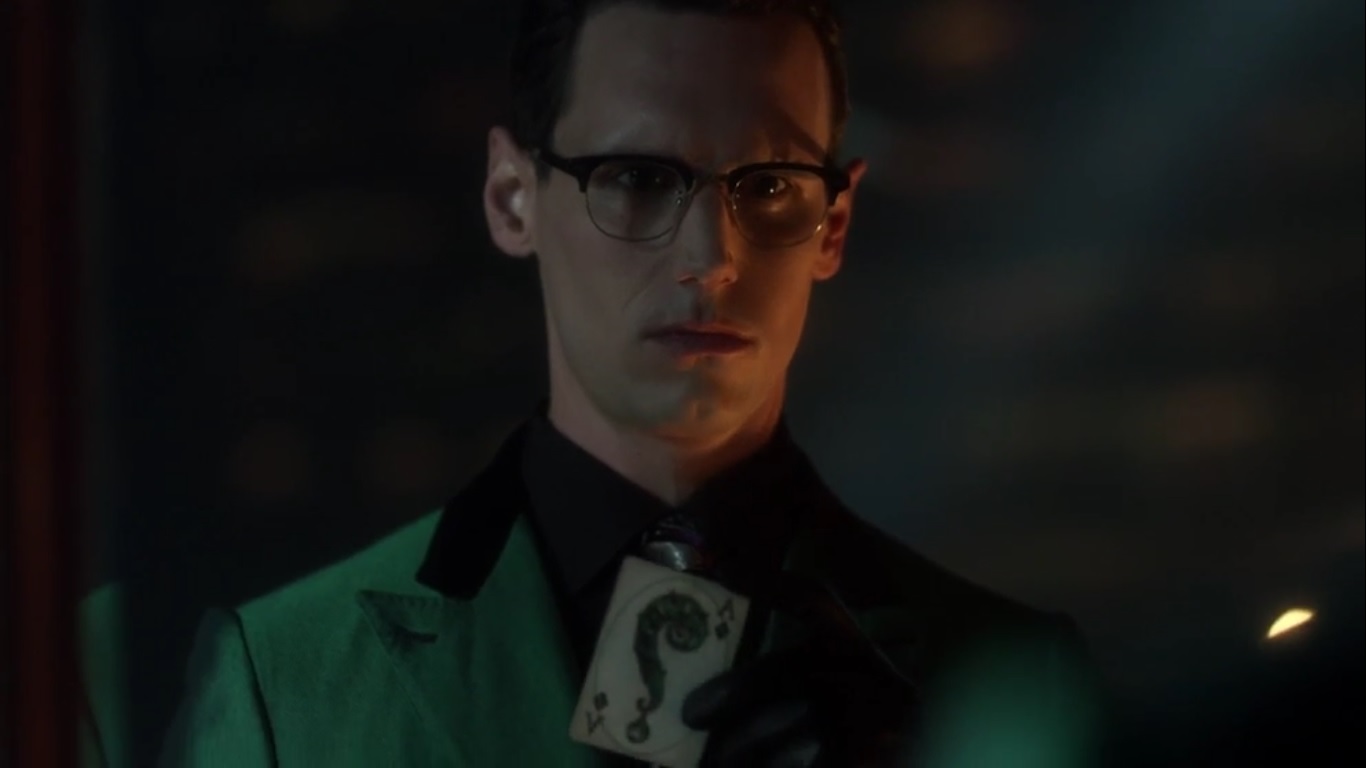 Actually, let me get Ed out of the way. So Riddler is waking up in different places with Ed taking control at night. It’s a nice reversal of when the Riddler used to take control when Ed slept, but I don’t mind its inclusion here. I’ve ragged on Gotham for including various subplots into episodes where they aren’t needed or could’ve been saved for future episodes.