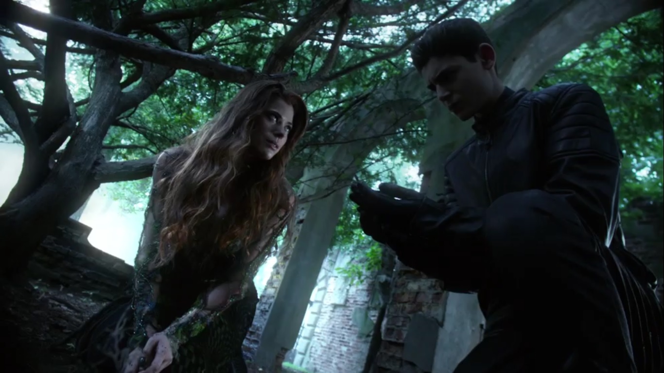 Bruce going to Ivy and begrudgingly trusting her shows not just his willingness to head into dangerous territory, but how far he’ll go in order to help Selina. Smart on him to not blindly trust Ivy, though. He may be desperate, but he’s not stupid. Even though Ivy killed the villagers, Bruce wasn’t leaving until he got what he needed. And I like how he managed to get under Ivy’s skin, saying her park is just full of death.