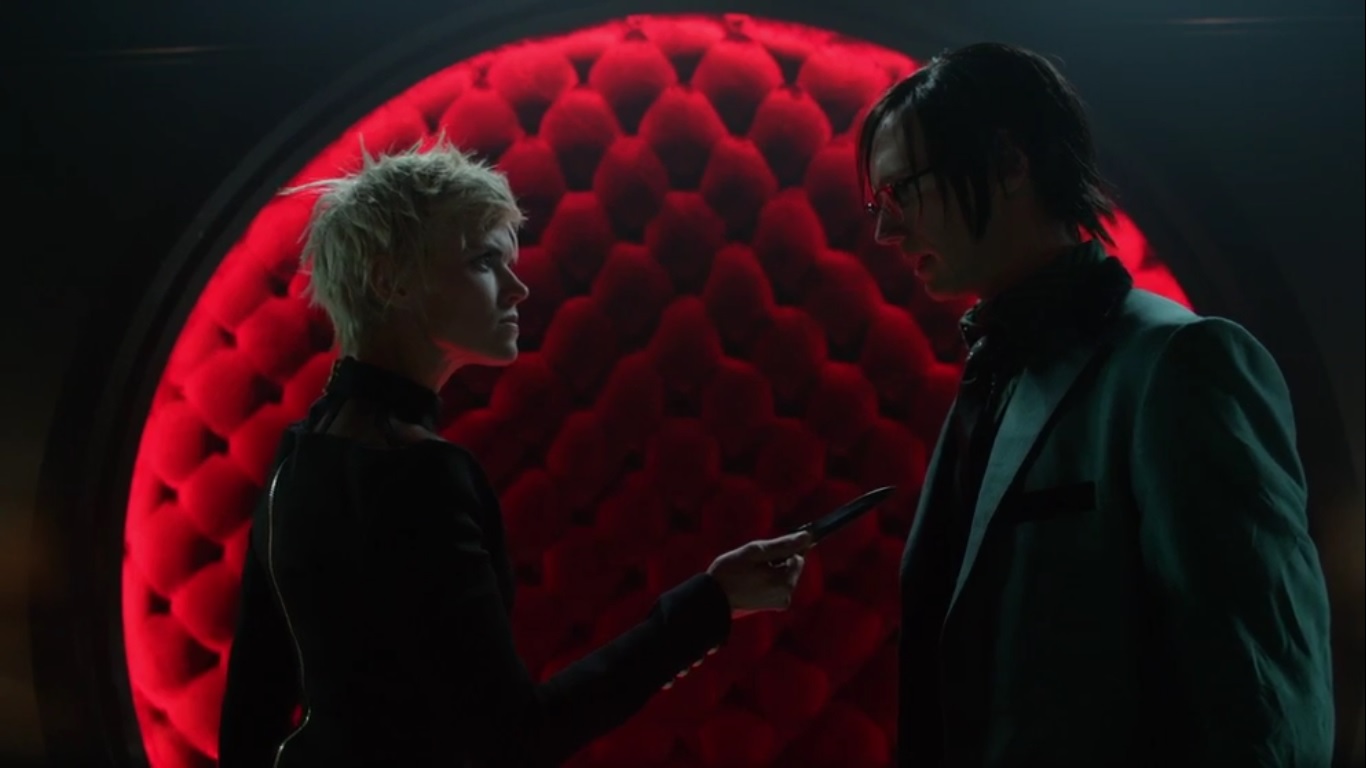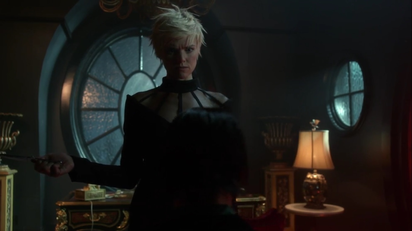 Turns out that Nygma has been brought to the Sirens’ club by Leila and another of the League ladies. Nygma needs information from Barbara, even though she’d much rather carve his face into a puzzle. Ed isn’t worried, though. With all the plotting that he’s done in the past, he reminds Barbara that he’s never done anything like shoot a rocket into a building full of innocent people. Barbara knows this. There’s more going on here.