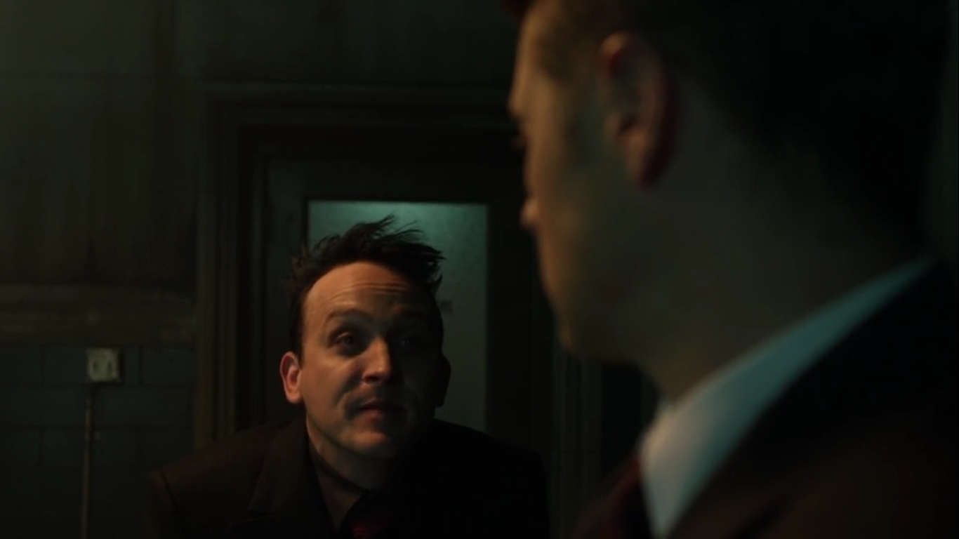 Oswald is brought into the GCPD, and asks for the room so he can talk to Jim without Eduardo present. He then tells Jim that Ed is a patsy. Puzzles and games, that’s Ed’s style, but not killing hundreds of people. Jim realizes that Oswald is right, so who could set him up? Eduardo won’t go for Oswald going free, but Jim is in charge. Things are changing in Gotham. Even if Oswald walks, the army will come for him.
