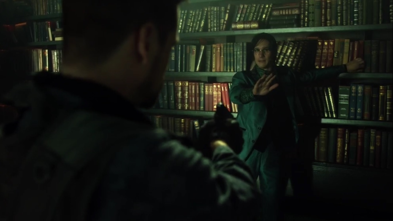 Jim and Eduardo arrive, but Riddler wants to prove his innocence, especially to Jim. After all, Ed reminds Jim that he’s only hurt people who hurt him first. He didn’t now a single person in Haven, though. Eduardo is ready to act, but Jim prefers to bring Ed in so he can stand trial. Ed pulls a book, turns out that he’s fitted the room with pressure sensitive explosives. Riddler has a device that monitors his heartbeat.