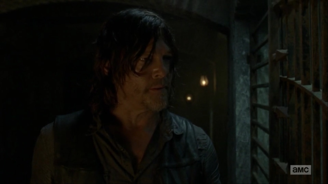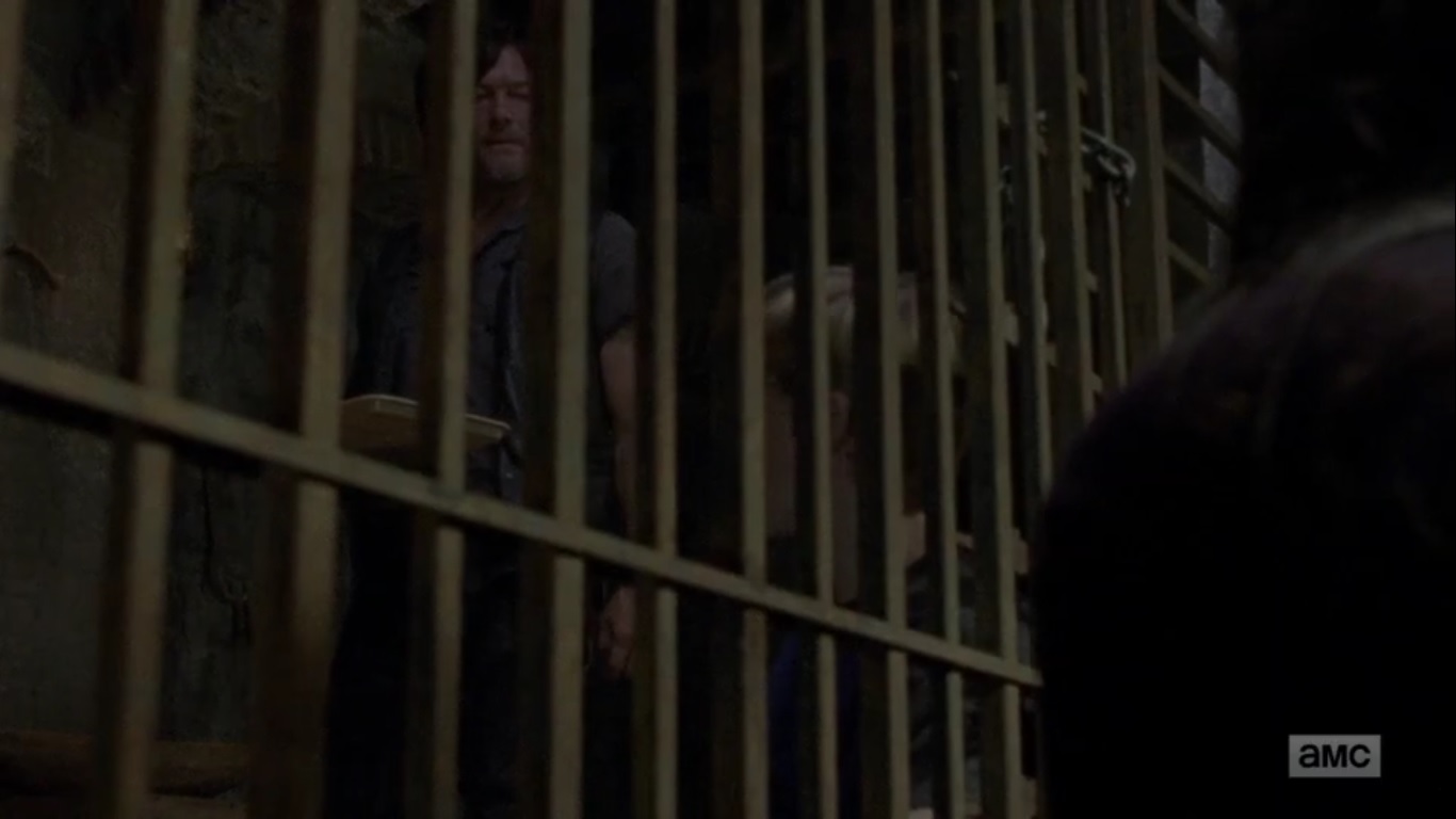 Daryl returns to Lydia’s cell, telling her that some fathers come up with excuses to beat up their kids. Belts are good, but some dads aren’t picky. They’ll use whatever they can find, like a switch- which Daryl is currently holding.