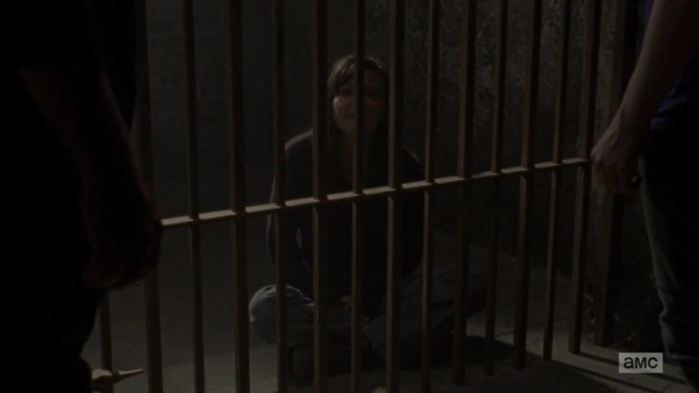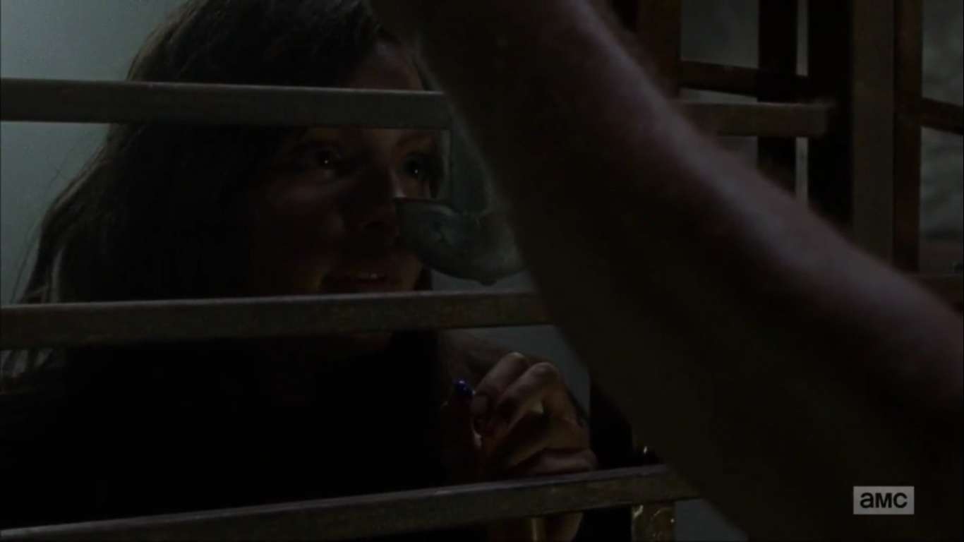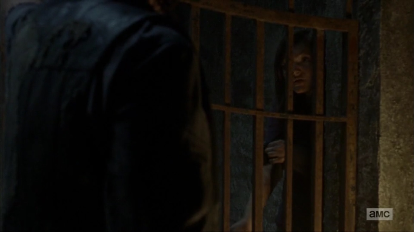 When Daryl approaches with some water in a ladle, Lydia attacks. However, it’s short lived, as Daryl is faster and able to prevent her from trying to leave. Well, now you don’t get any water, Lydia.