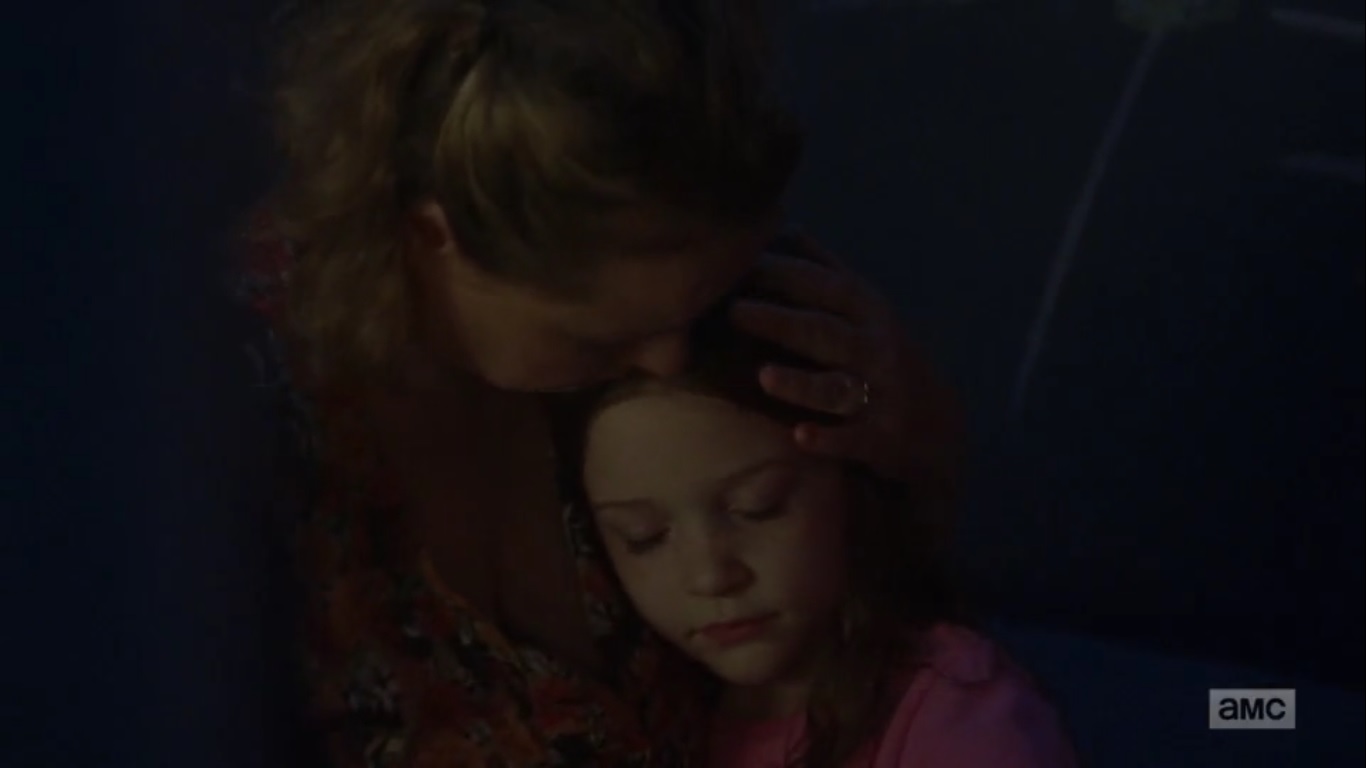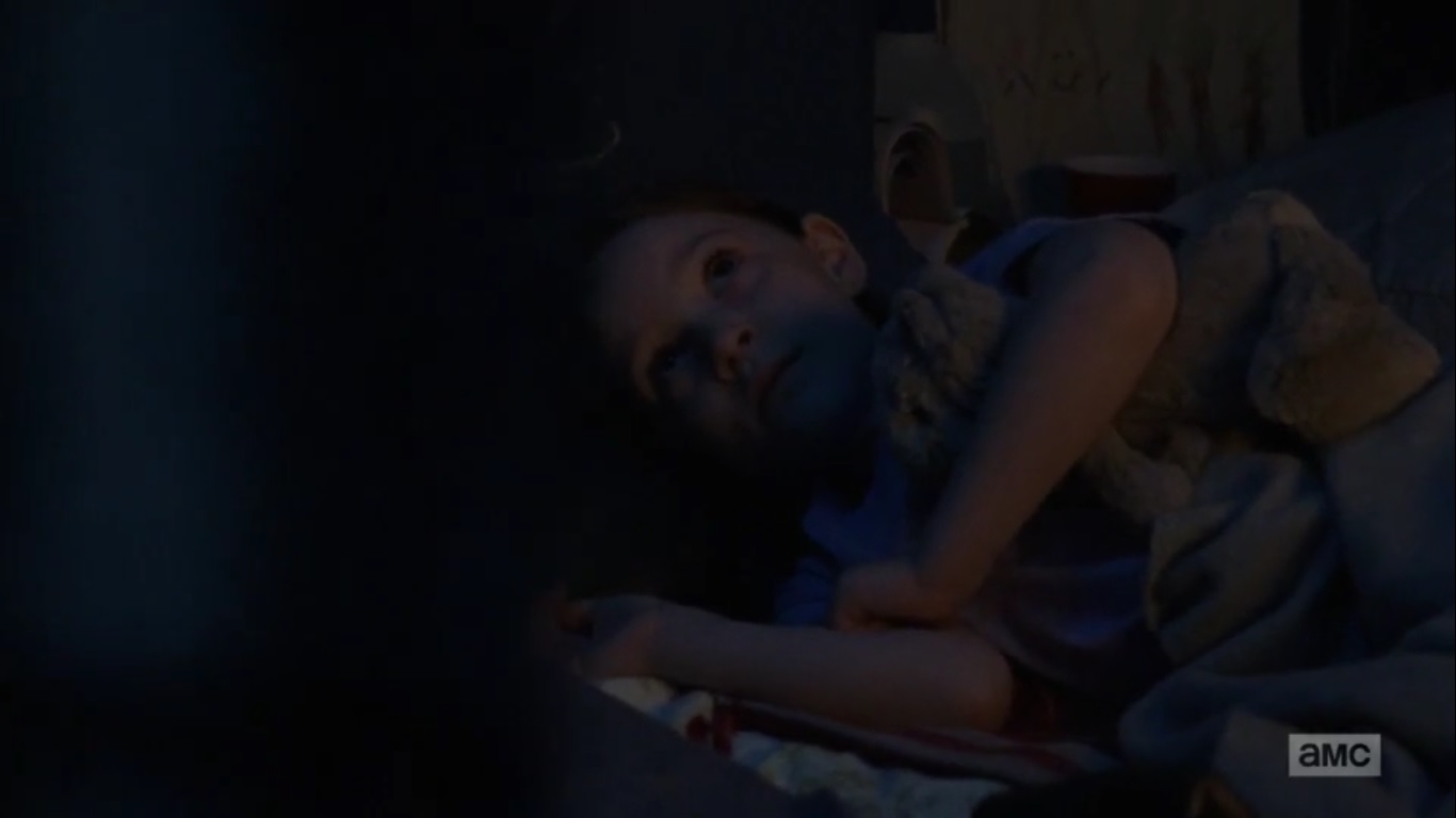 In the present, Lydia tells Daryl about the song she used to hear when she was five or six years old. It calmed her. As far as Daryl is concerned, Lydia’s mother did what was necessary. He tosses her the pills and says that there are many good people at the Hilltop. Rather than acknowledge that, Lydia asks for water.