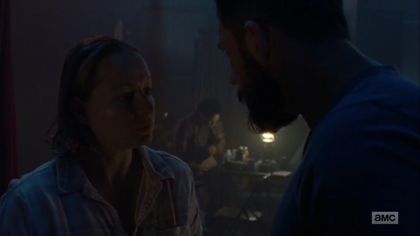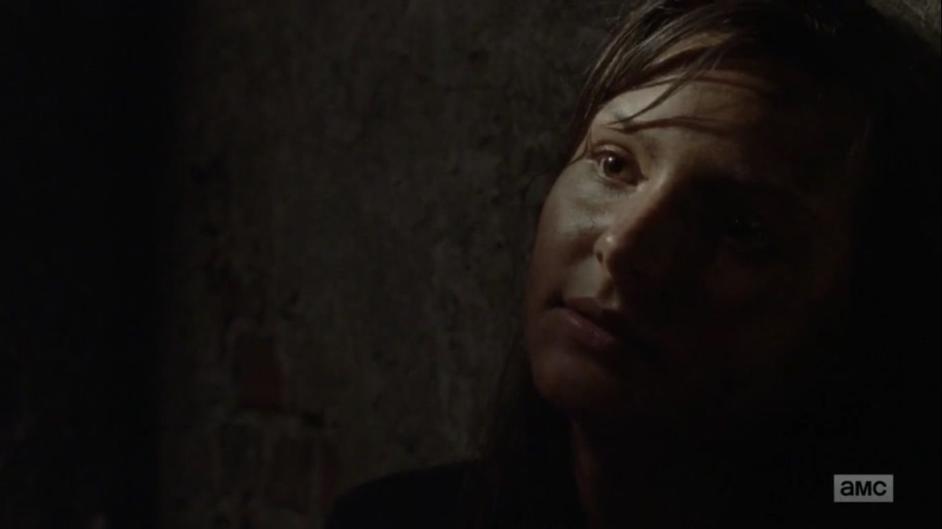 Daryl heads back into the cellar and presents some medicine for Lydia, as he’s noticed that she’s been pulling on her ear like it hurts. He tells her that two of his people went missing and asks if she knew about that, but hey, she’s been in this cell. So then he asks if Lydia’s mother would kill the survivors if she crossed them. Turns out she would do what she had to do.