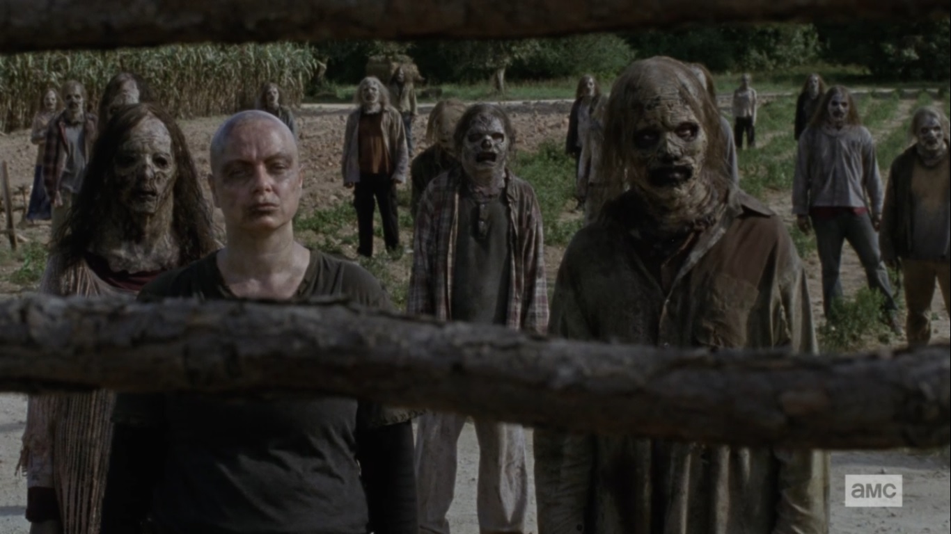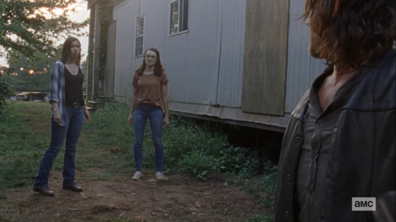 Then we jump to the Hilltop as Alpha tells Tara that she just wants her daughter, as she knows that the Hilltop has her. She shows her face because she means no harm. Daryl cautions Alpha to turn around, but that’s not the right answer. On cue, more walkers just stroll on up.