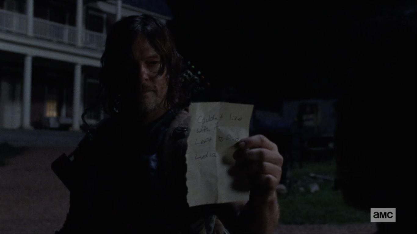 Daryl is going to get Lydia, but it turns out that she’s already gone. He tells everyone to split up and start searching for Henry and Lydia. They fan out to find the two.