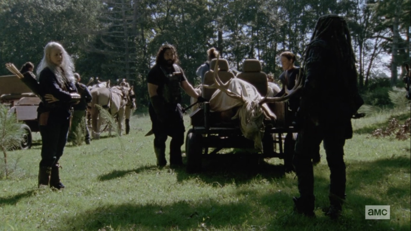 As the two go through the Kingdom grounds, she updates him, and he’s just glad to have her back home. As am I. Also, Carol is going out on the hunt, even though Ezekiel would want her to work on the fair. Now, though, onward for a bounty. In a few days’ time, though, they will feast. Everything will work out.