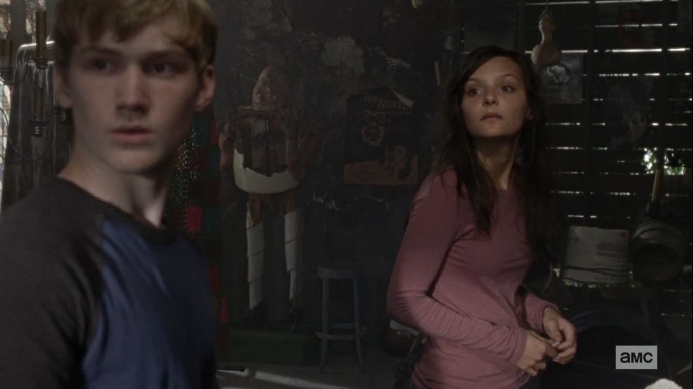 More than that, I like Carol slowly changing her tune and suggesting that everyone stay to make sure that they get the projector bulb. While she’s still not over the moon with Ezekiel’s theatrics, she does understand where he’s coming from, and she’s willing to help him accomplish goal. Luckily, they all managed to do that. Also, really liked the use of the mixtape, if just to get some music that amped everyone up while killing walkers.