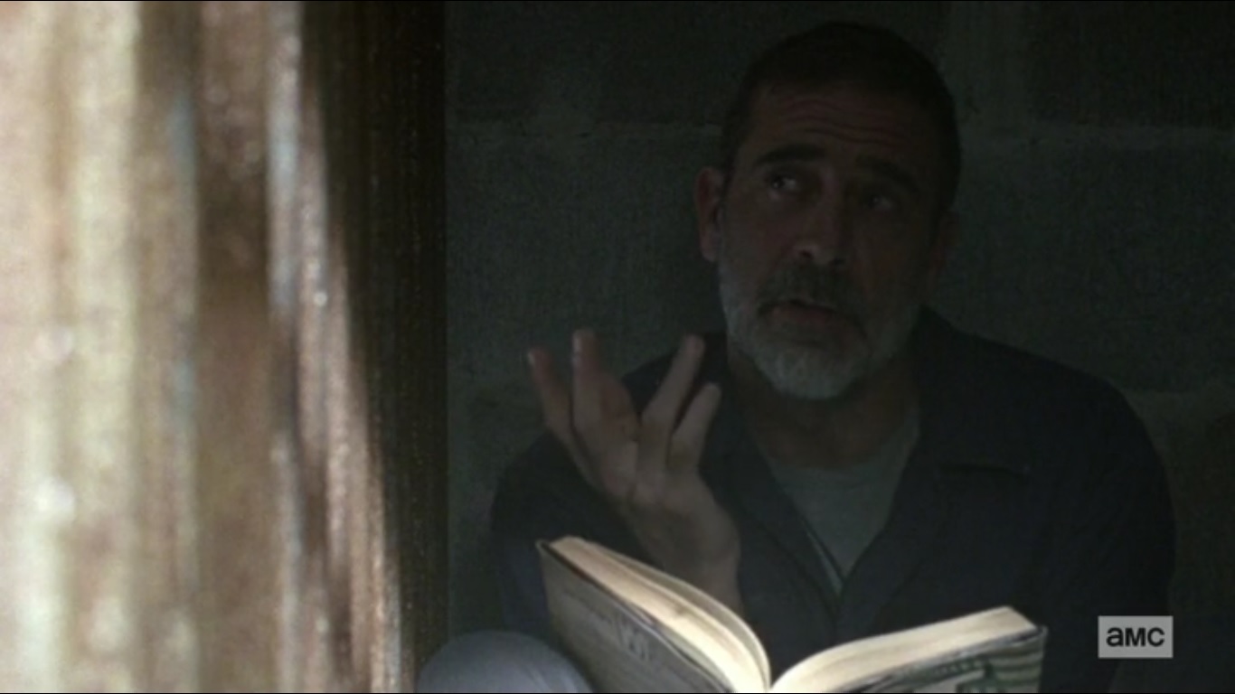 He’s alone with himself and his thoughts…and his books, anyway. As he did with Carl, Negan cuts through the bullshit and tells it like it is. So the fact that he told Judith about him killing Glenn and Abraham shows that he’s not keeping secrets. She would’ve found out anyway, and Negan’s got nothing to lose by being open. More than that, it’s not about getting Judith on his side or them being close friends.