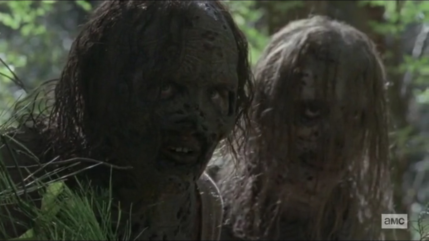 The episode begins with a flashback as a pregnant Michonne cuts down some defenseless walkers in the woods. Everyone needs a hobby, I suppose. Anyway, she finds and digs up Rick’s Colt Python. She’s joined by Daryl, who says that he’s been down this path before, but found nothing. Michonne has been having trouble sleeping, and Judith has been asking about Daryl.