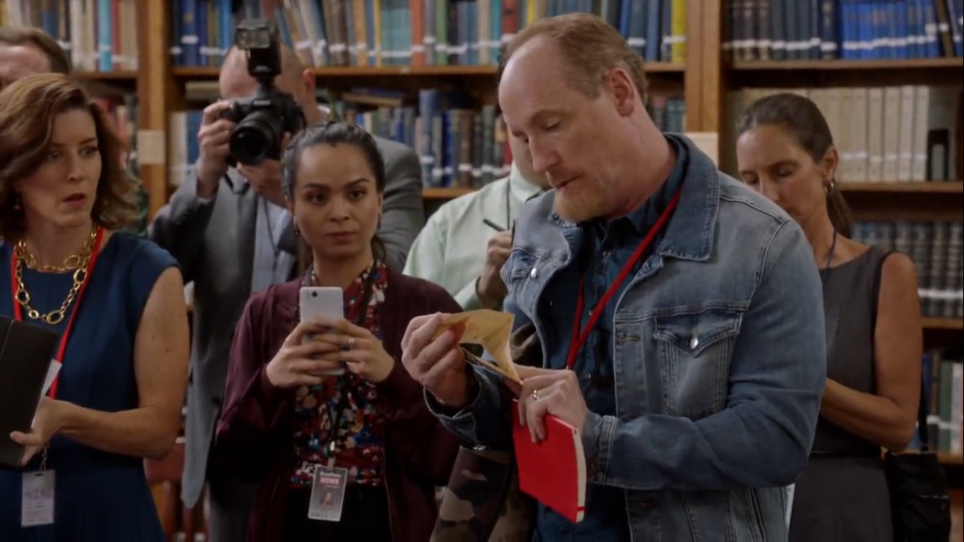 Then, Mike, now working for Buzzfeed of all places, shows up with a question, but he’s actually looking at a menu. Leon cuts him off and kills the press conference while the team briefly and awkwardly catches up with Mike.
