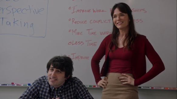 With the debate over, Team Selina celebrate their victory, and it’s even given her a bump in the polls. Also watching this are Dan and a recovering Amy. Luckily, Dan has a frozen Maxi Pad for her. Before Amy can contemplate if she made a mistake, she gets a phone call from Teddy, who offers her the chance to help lead Jonah’s campaign.