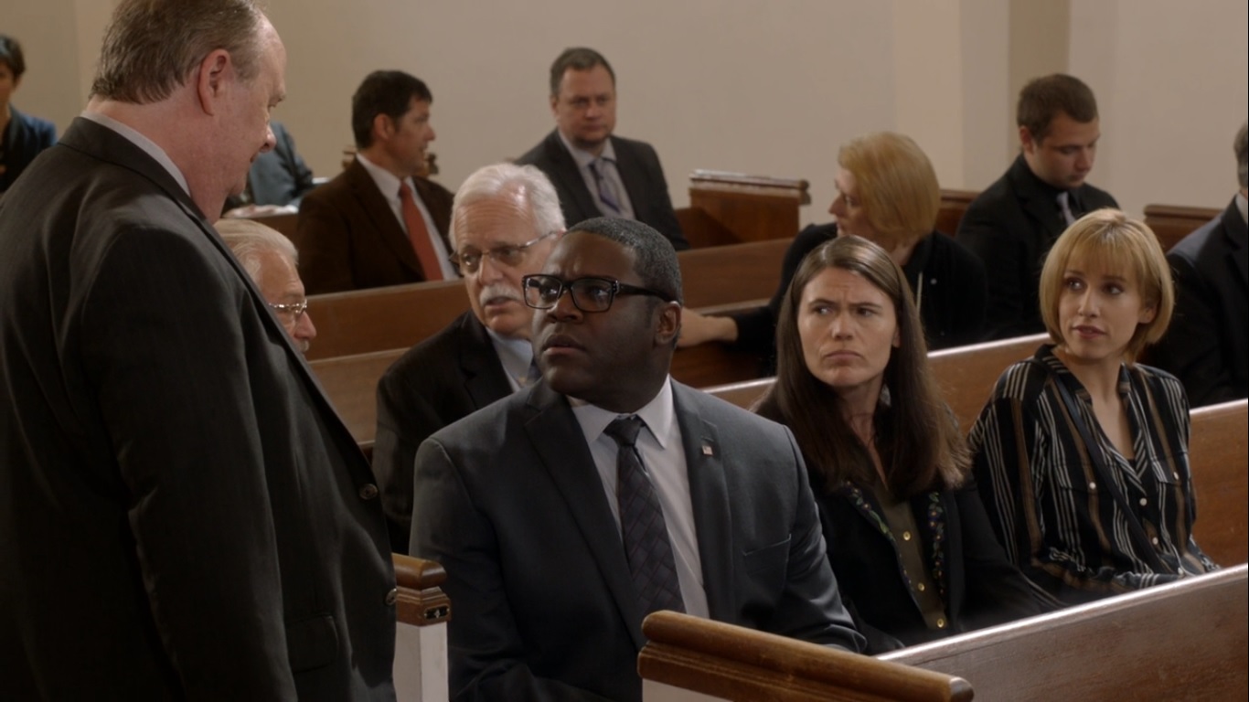 Gary enters with General Stattler, who has tried to get Selina’s office to sign off on a Presidential funeral plan. Since Selina’s tenure as Presidential was brief, Stattler has used President Ford’s ceremony as a template. Selina is not on board with that. She’d prefer a classier take on Princess Diana’s funeral. No Prince Charles, though. Selina then suggests to Gary that they make a list of who they don’t want attending.