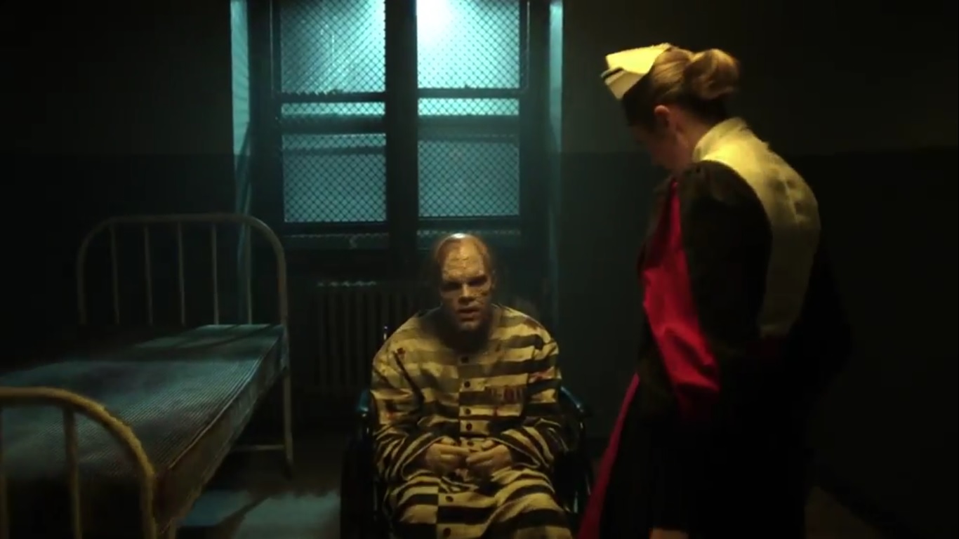 Ed then goes over and interrupts one of the inmates who is painting on the one and only Jeremiah Valeska, who has been a vegetable for quite some time. But he’s a legend, and if you’re going to screw with a legend, you might as well do it properly, like stab him in the leg, like Ed does. Still, Jeremiah remains catatonic.
