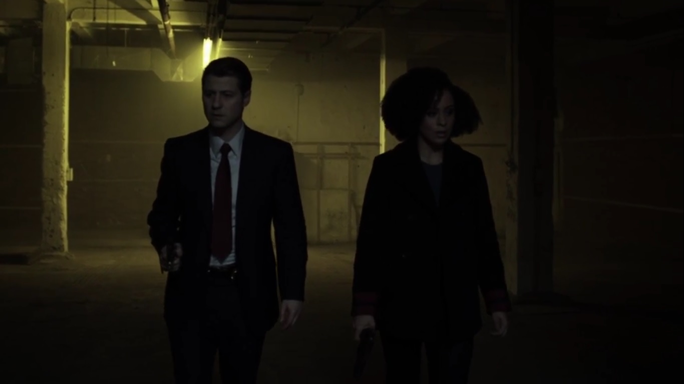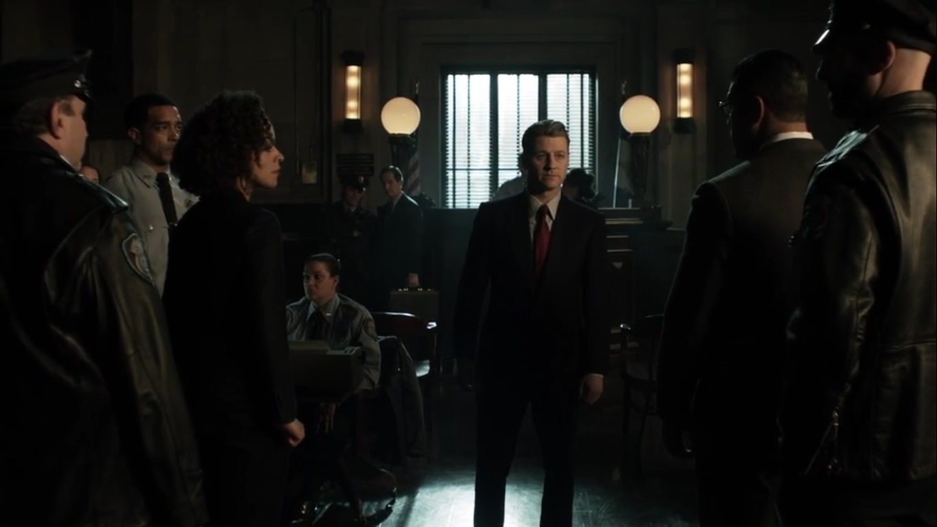 Jim leaves interrogation and tells the officers that if anyone doesn’t believe Harvey Bullock is innocent, they can leave. No one does. Since Ed has been in Arkham, he had to have had help. It’s possible Oswald helped, since he was just released. Every cop will be on the search. The cop was associated with a gang, so Jim and Harper will head to that gang’s location.