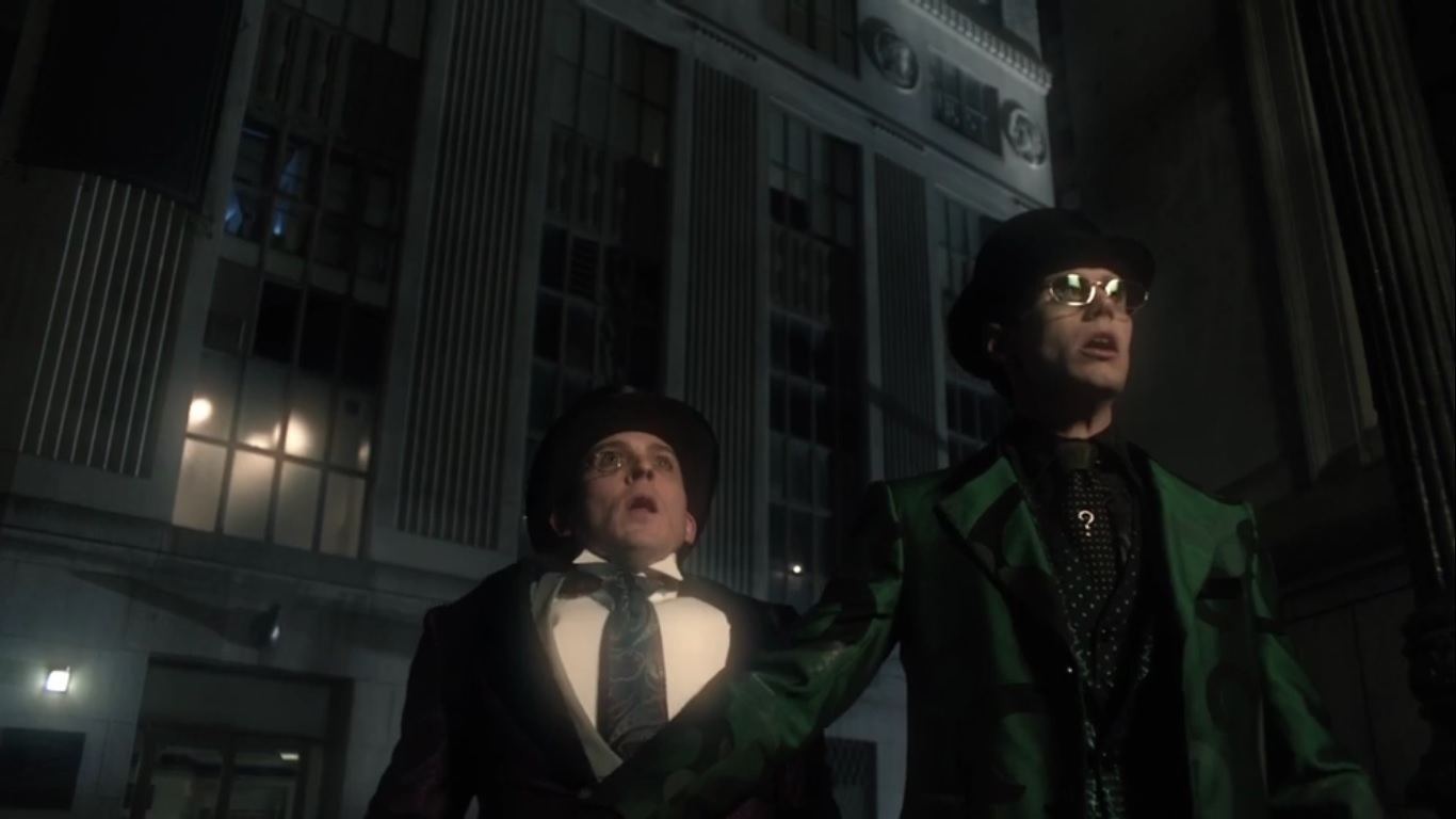 As Ed attempts to escape, he runs into Oswald, who offers to help his old friend. However, this reunion is interrupted when something lands on their limousine. The two exit the limo, look into the sky, and spot something heading their way…