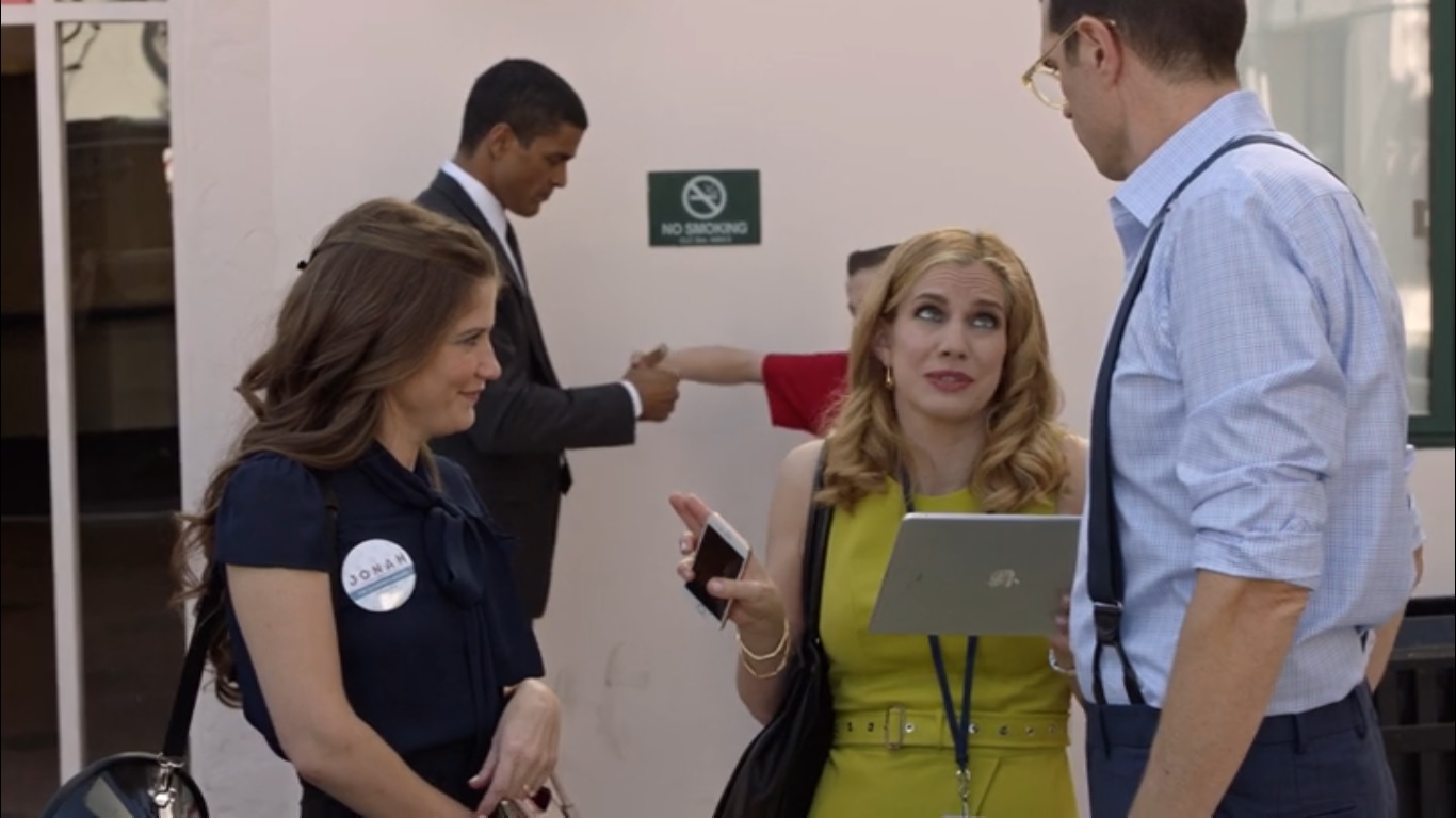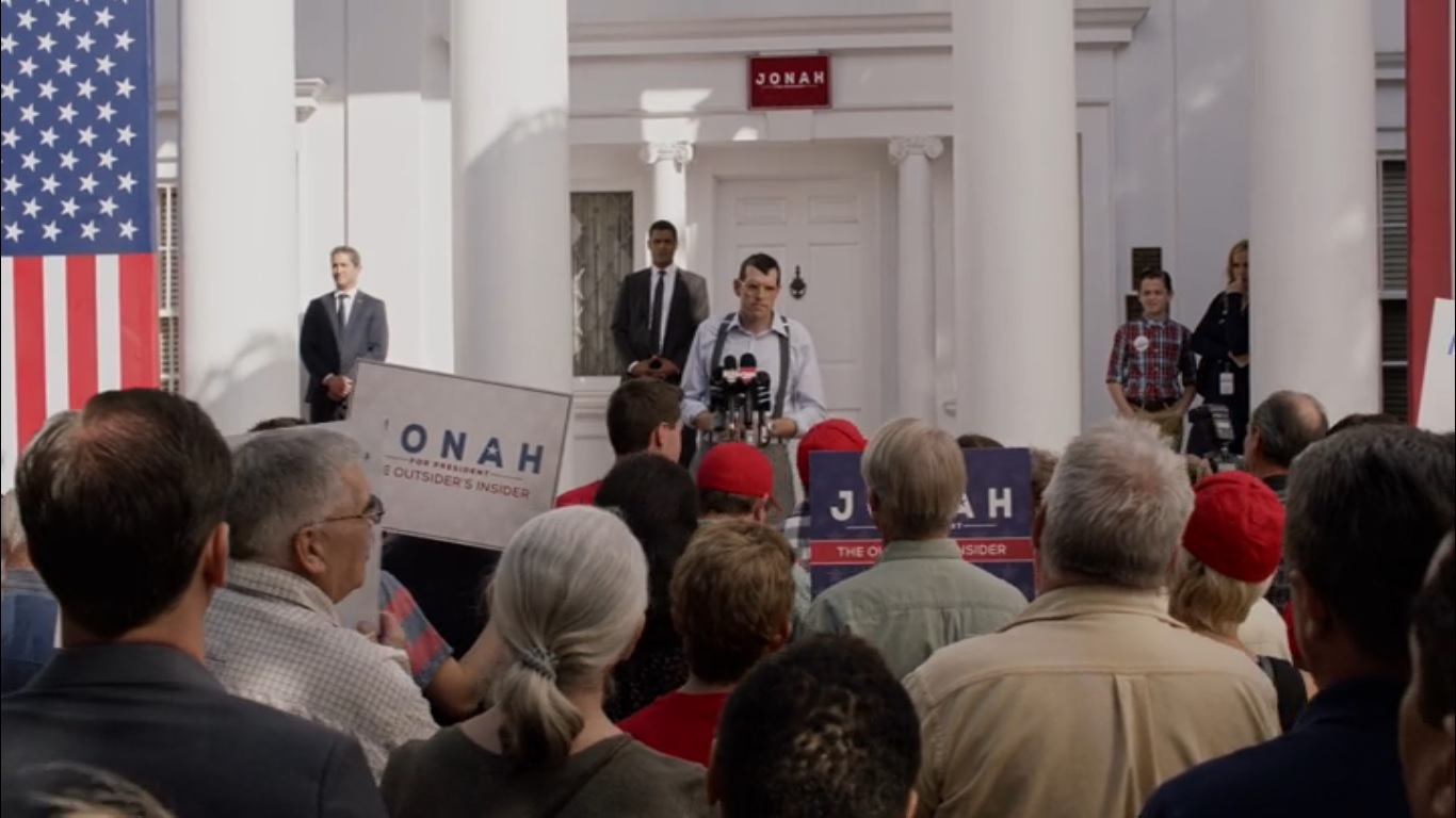 Back in the States in Harrisburg, PA, Amy tells Jonah that his anti-vaccination message is bringing together a huge contingent of voters. Lloyd, meanwhile, is still trying to get in touch with Jonah, much to his irritation.