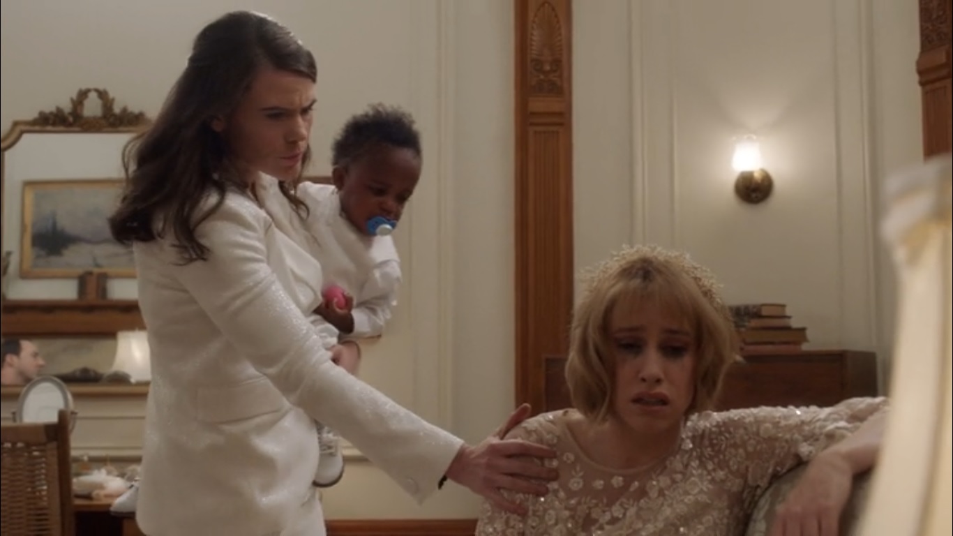 Selina tells Catherine that she’s proud of her and her decision to get married at the embassy. Selina then goes off to freshen up in a room that, as Gary points out when he returns, is not the bathroom…