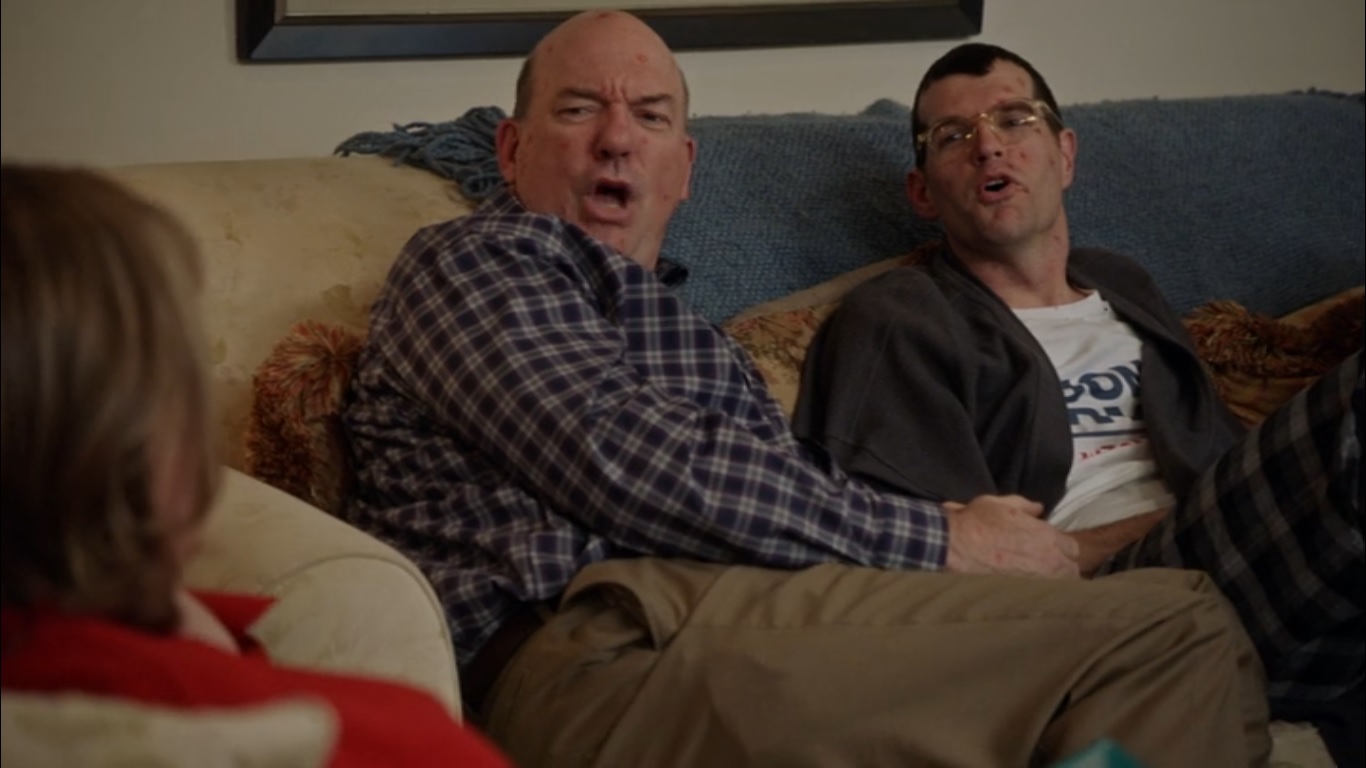 Lloyd arrives to talk with Jonah, but Jonah hates Lloyd so much that he could walk into a supermarket and shoot everybody. A bit intense, but okay. Lloyd tells Jonah that he loves him and he hopes that Jonah will give him another chance. Jonah quickly accepts and allows Lloyd to be…well, his dad. They hug, and Jonah tells his father that he loves him, but No Homo.