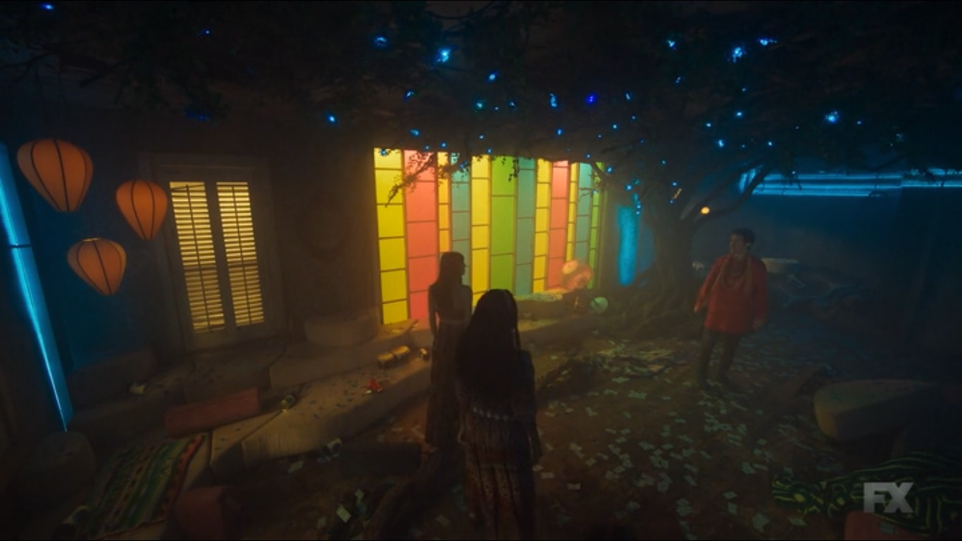Back to David’s hippie compound as his followers are dancing the night away. They’re all getting matching blue flower wreaths.