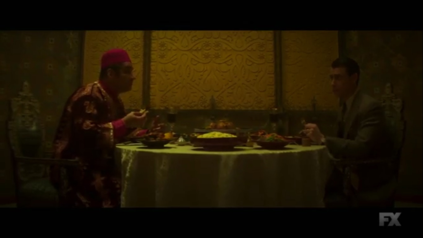 Let’s return to Farouk’s palace. Charles joins Farouk, but he’s not alone this time. He’s got his son, who Charles introduces as an old friend stationed in Morocco during the war. Farouk is thrown off, but he’s able to glimpse into David’s mind and see his future. Still, he beckons the two to sit.
