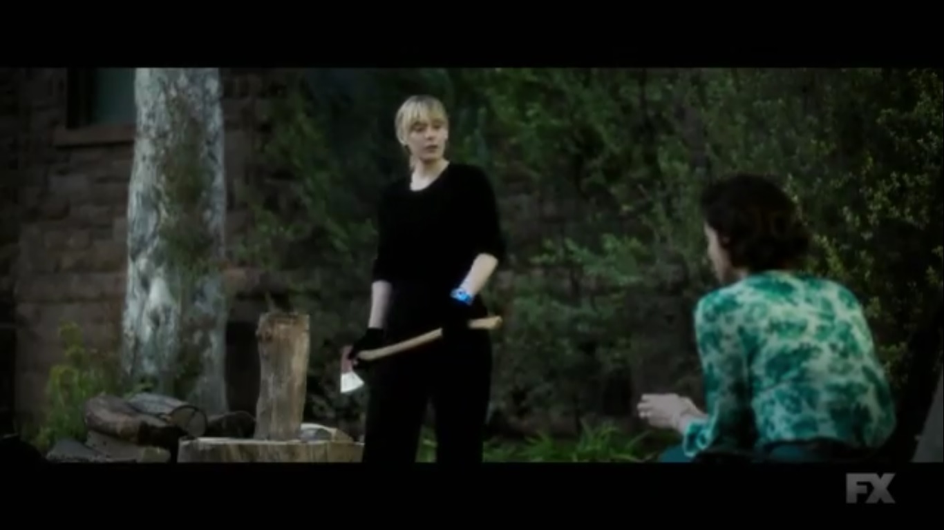 Enough about that, though. Let’s see Syd chop some wood, instead of rip it in half like Captain America. She asks Gabrielle if David is a good baby, with Gabrielle saying that David cries a lot, as if he knows something. Syd asks what he could know. Syd says that people talk about having a second childhood, but they just mean they feel young again.
