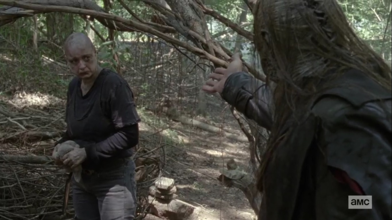 But just as Alpha decided to part ways with Lydia, we see Gamma step up within the ranks and sacrifice her own sister in order to demonstrate her commitment. Like Alpha, Gamma has buried her emotions. It’s a nice way to show how the Whisperers rise in the ranks, but this sets up potential conflict with Beta, who may now see Gamma as competition.