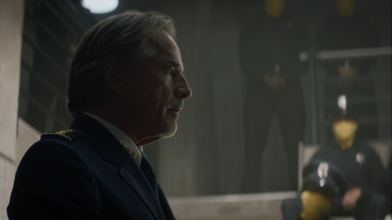 Judd meets with another officer, Wade, also known as Looking Glass, played by Tim Blake Nelson, and asks if his uniform was brought out. Turns out that Officer Sutton has been brought into intensive care. Crawford tells Looking Glass to run a background check on all the employees at the facility that got a look at Sutton’s face.