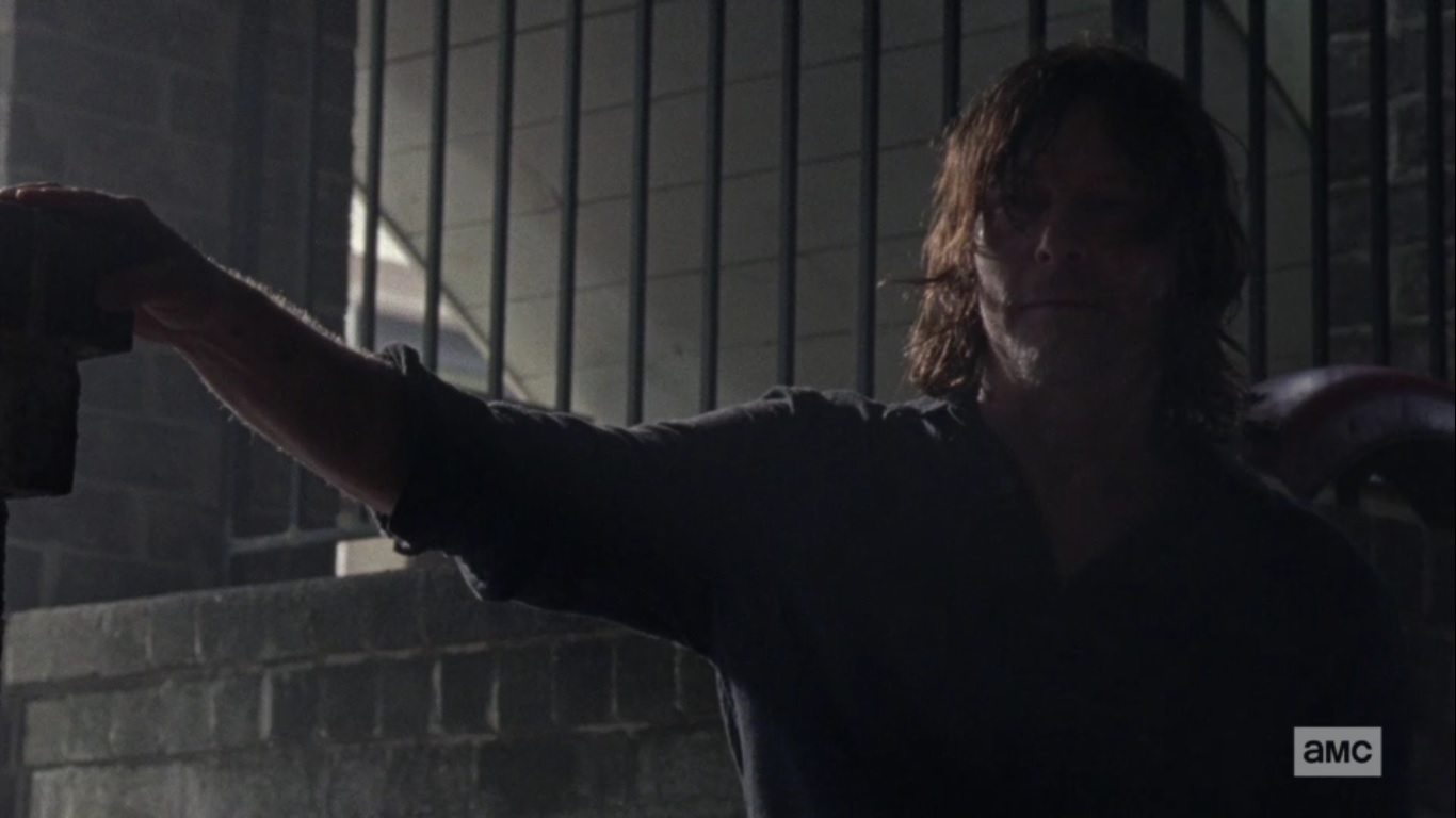 However, Negan knows that Daryl is here because he doesn’t know what to do with him. All that time Daryl fantasized about Negan’s death and tried to kill him, but now he’s unsure. That said, Daryl reminds Negan that they’ve never been alone in a room before- I don’t think that’s technically true, but whatever- and the people outside are out for blood. That much Negan knows.