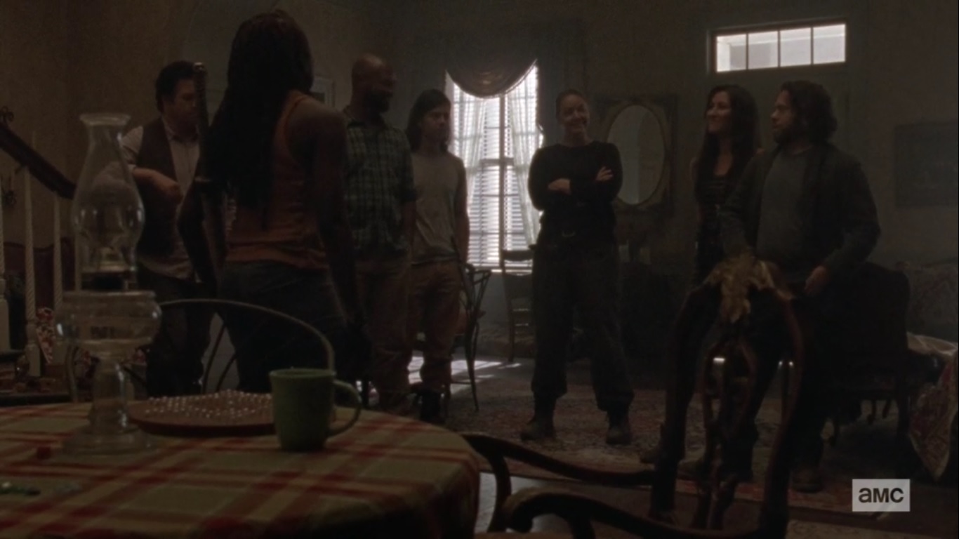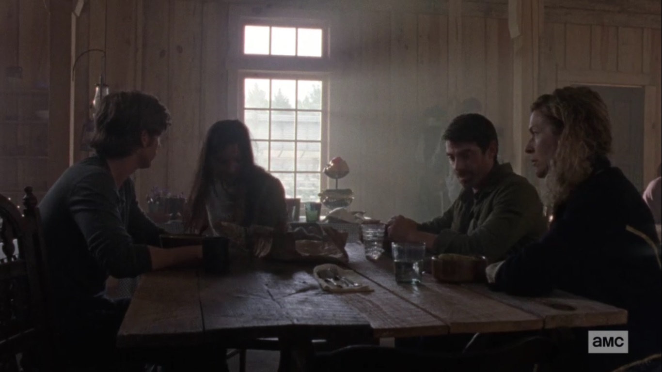 I almost want to call this a ‘breather’ episode because it mostly functions for character building and development. There’s some brief action moments with the walker and tree situation at the Hilltop, and the episode keeps at a steady pace as we jump back and forth from Hilltop to Alexandria. Structurally, this episode is sound as the characters find themselves further driven down by the constant battles.