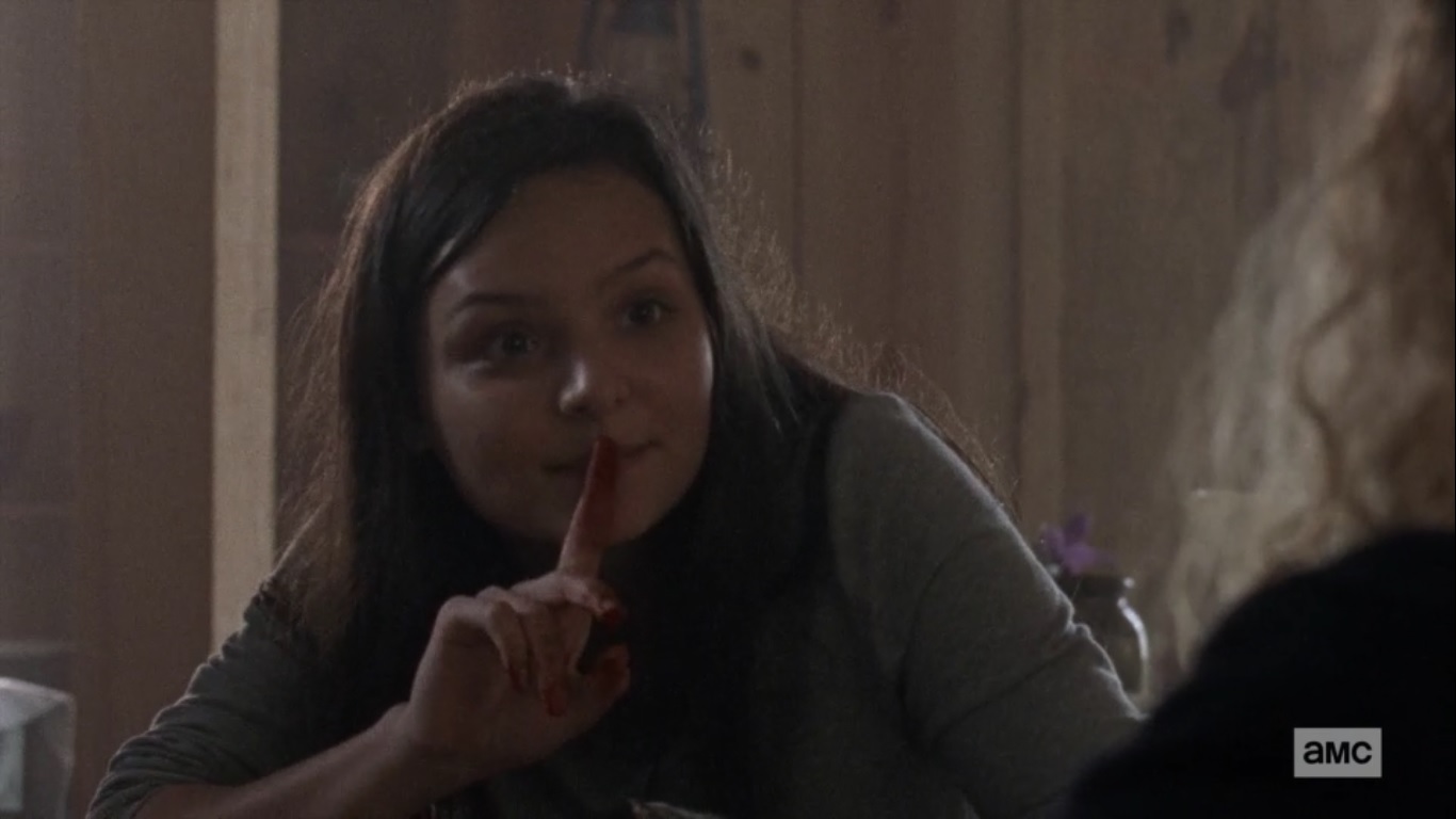 I suppose that’s debatable, but before Daryl can further warn Lydia to stay away from Negan, they see the words “Silence the Whisperers” spray-painted on a door. Well, at least the name has stuck.