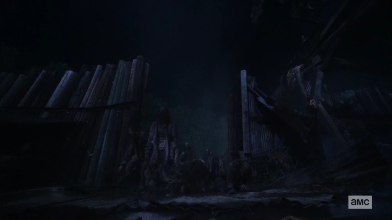 Alright, enough of this gooey shit. Back to a fallen tree at the Hilltop. As the injured are brought out, Luke and Alden are at the gates, where they hear the sound of a walker swarm. If the walkers keep pushing, they’ll bring down the entire tree and the barn with it. Luckily, Earl has some timbers to brace the tree. Magna’s crew decide to head out to take on the walkers.