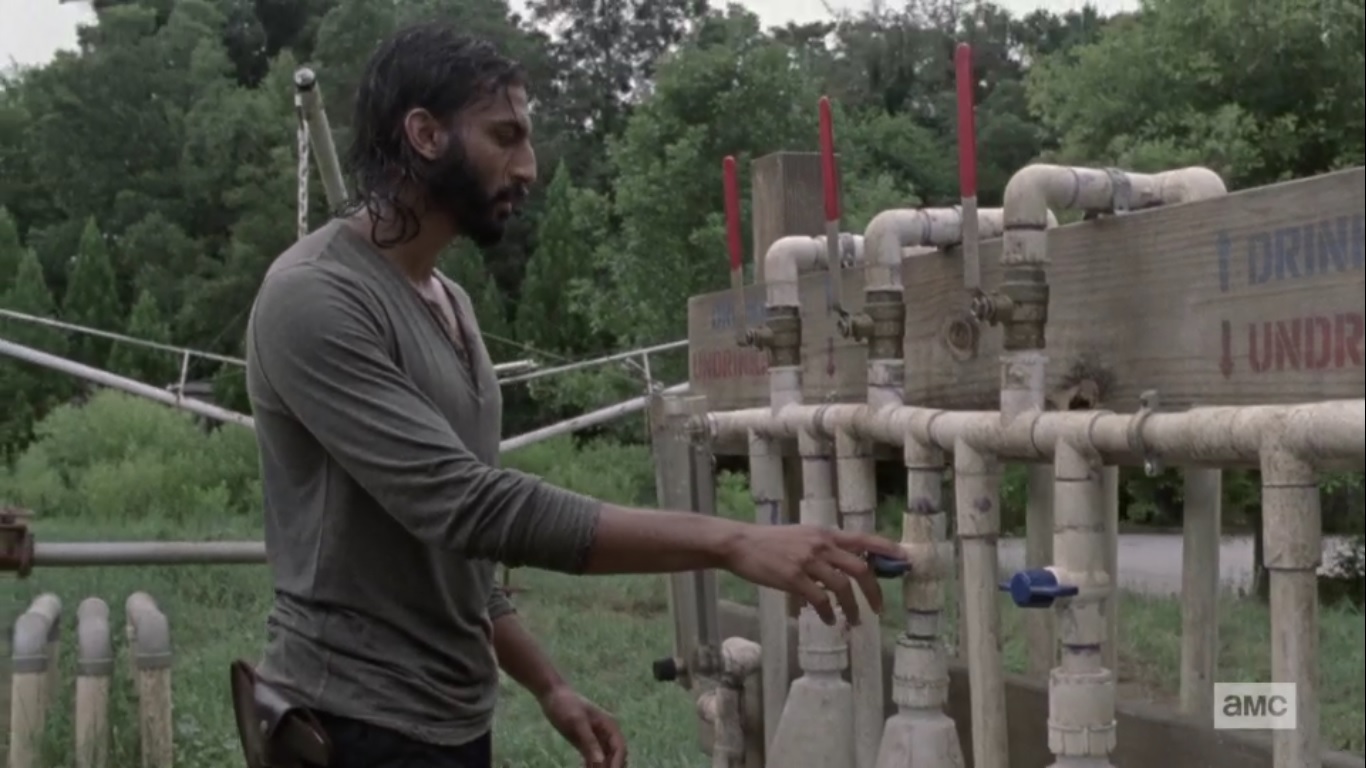 The episode begins with Siddiq awakening from another nightmare. The sound of Cheryl’s nearby shivering gets his attention, so he gives her some water and tucks her in tight before leaving. He gets to work taking care of Alexandria’s sick and filling up some jugs with as much water as he can. Despite his best efforts, it doesn’t seem like the sick are getting better.